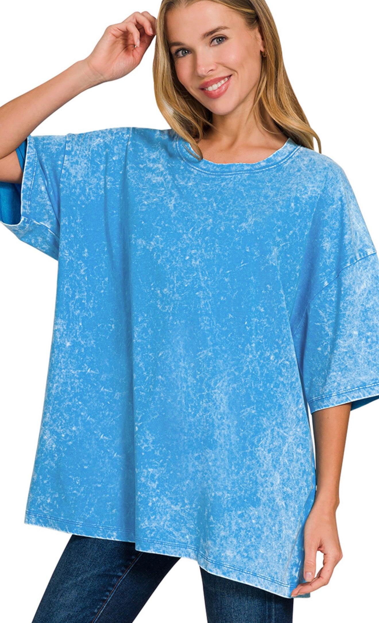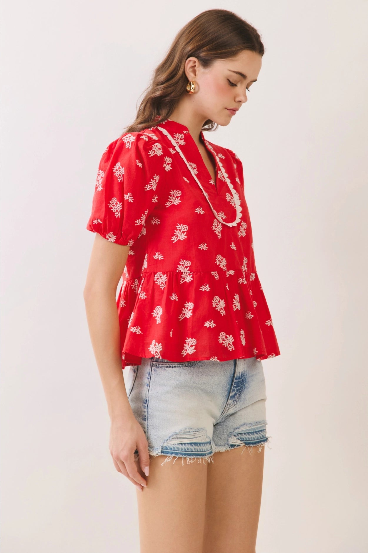 SPLIT NECK STRIPE SWEATER - Short Sleeve, Roomy Oversized Cut TOTAL BODY LENGTH: 19", CHEST: 50" approx.- MEASURED FROM S/M ** COLOR MAY VARY SLIGHTLY DUE TO MONITOR RESOLUTION Color: Ruby Red and NaturalFabric: 54%ACRYLIC, 24%NYLON, 22%POLYESTER Sizing: S/M (Fits...