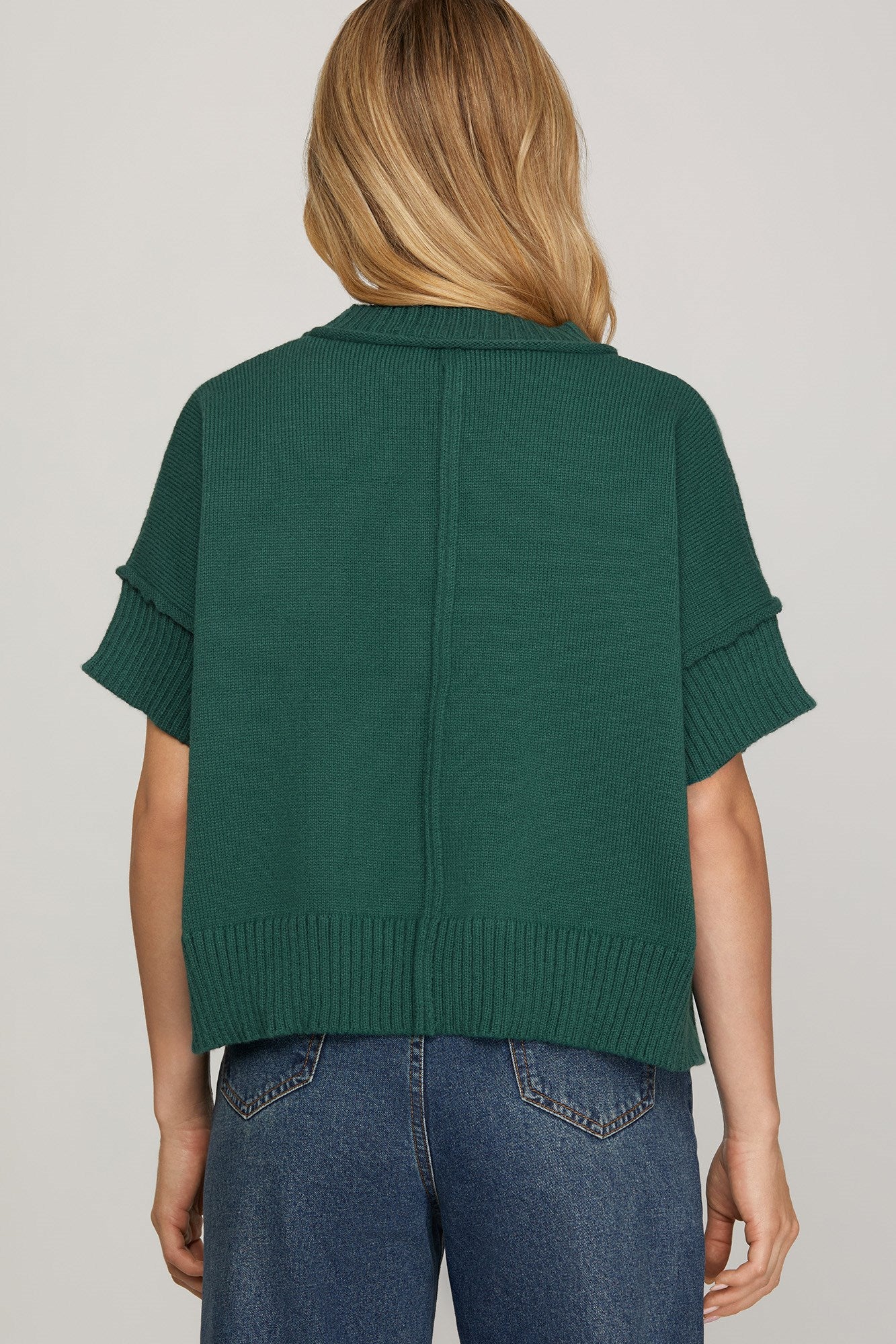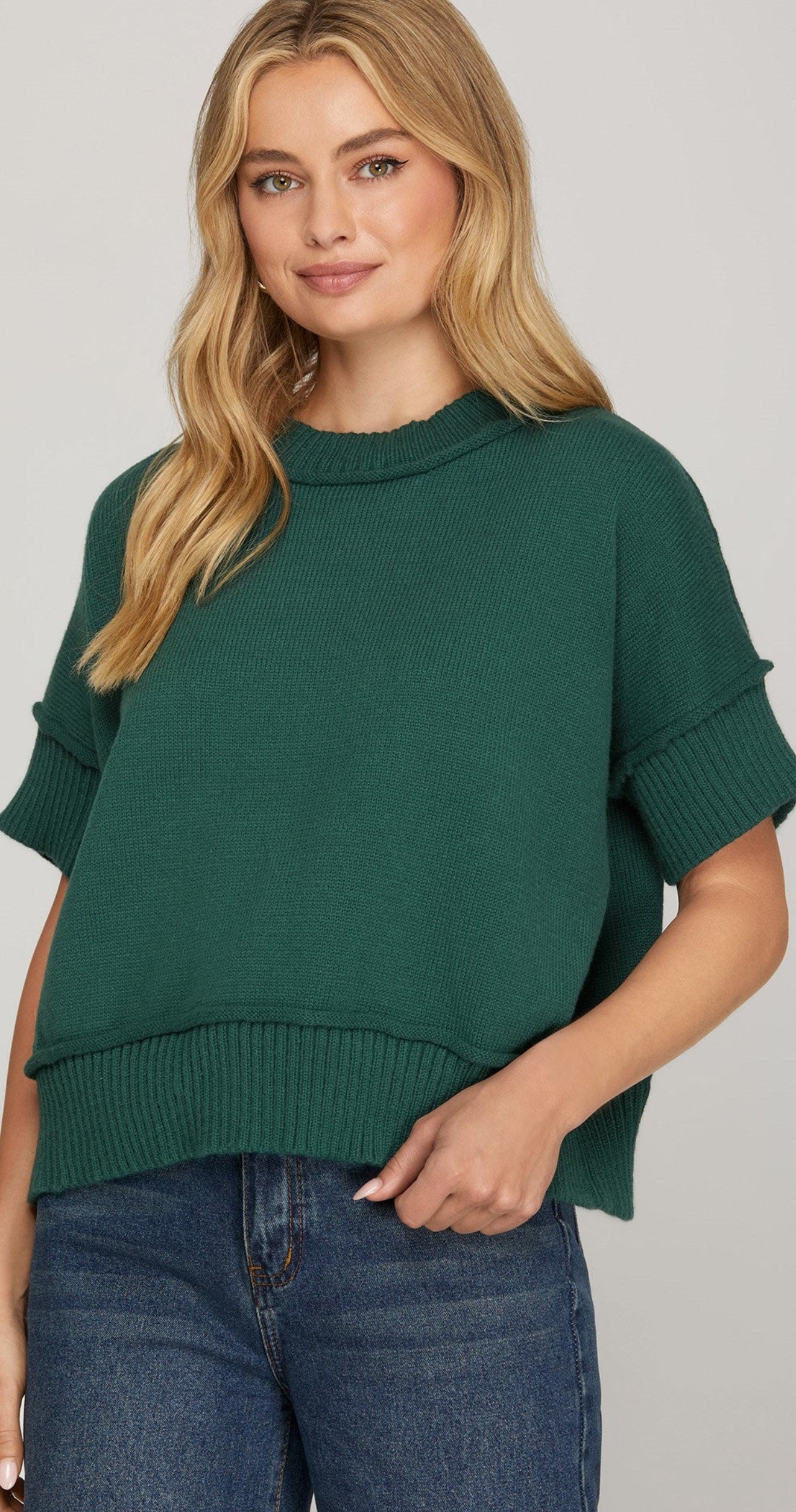 DROP HALF SLEEVE CREW NECK SWEATER - Roomy cut - seam detailing