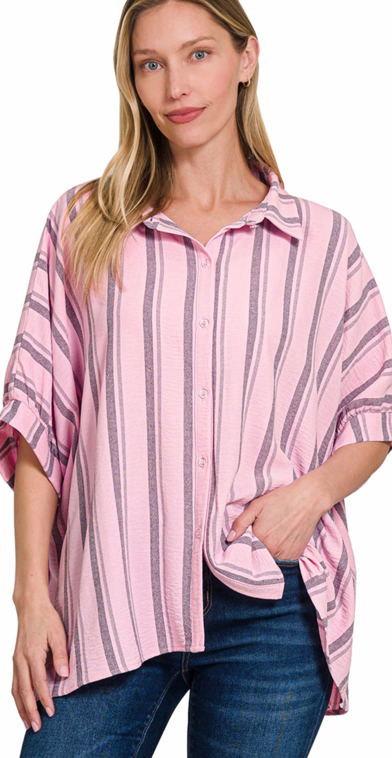 WOVEN YARN-DYE STRIPE OVERSIZED BUTTON DOWN SHIRTS