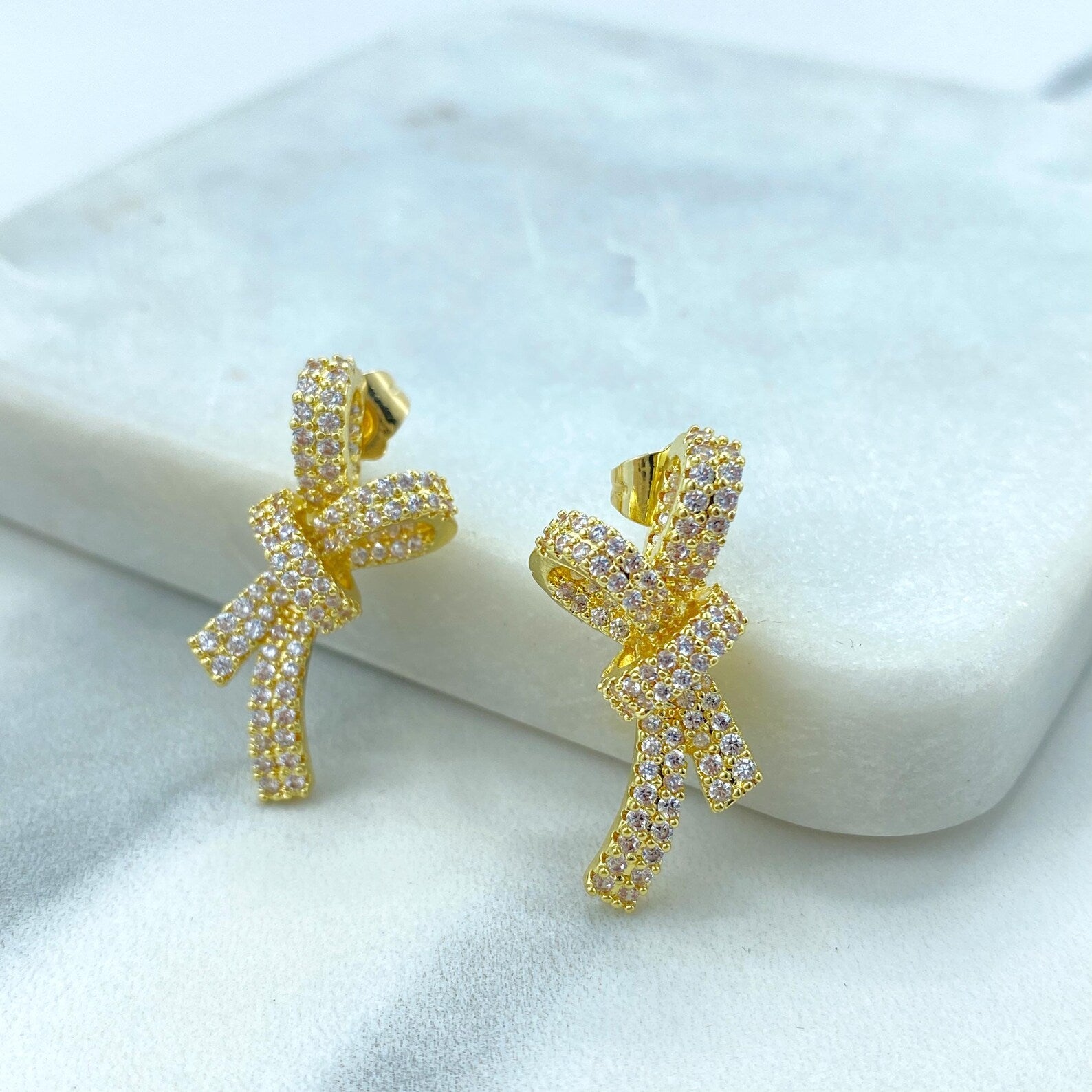 Gorgeous pave ribboned bow earrings