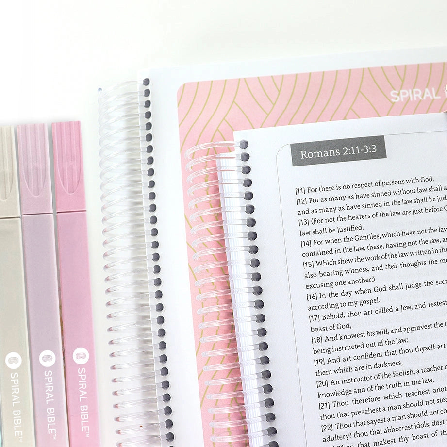 Introducing our Highlighter Pack, featuring six pastel colors. These high-quality highlighters are designed to work exceptionally well with your Spiral Bible, ensuring no bleed-through on the durable white notebook paper. The smooth, precise tips allow for easy highlighting without smudging, making your Bible study sessions more enjoyable and organized. Perfect for marking important verses, making notes, and creating a visually engaging Bible study experience, these highlighters enhance your connection with the Scriptures. Their pastel hues provide a gentle contrast, helping your notes stand out without overwhelming the text.