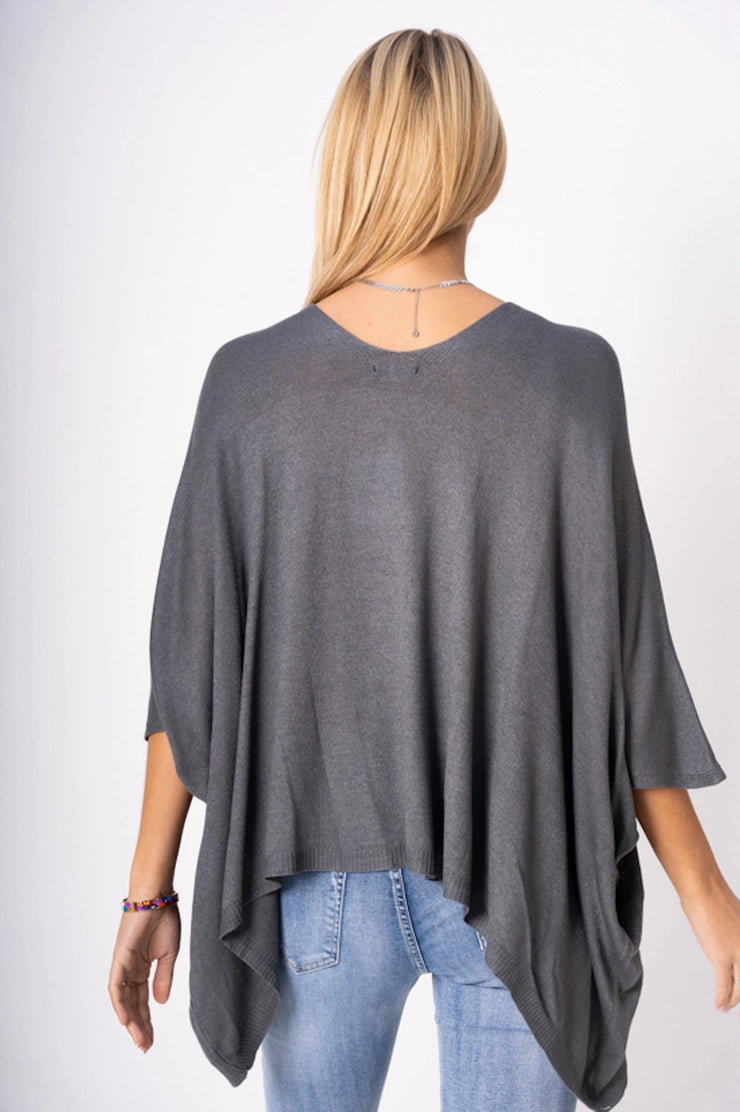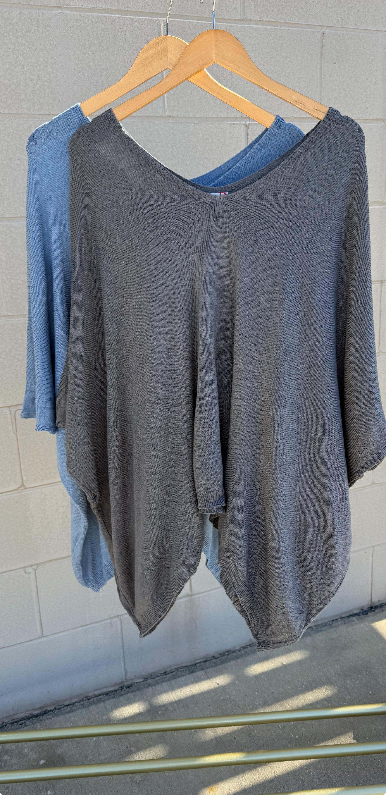 Solid Wide Sleeve Sweater. Double v-neckline, wide short sleeve, solid on front and back.