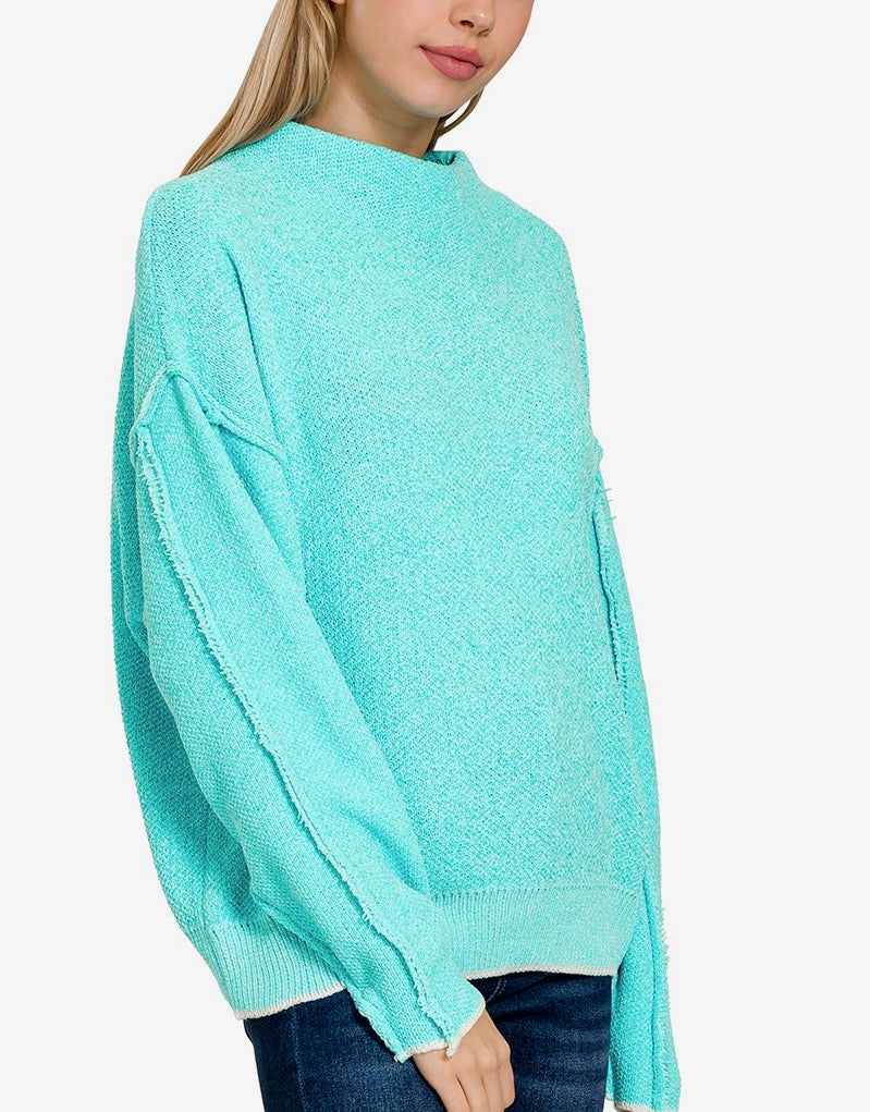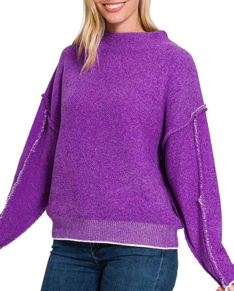 OVERSIZED MOCK NECK RAW SEAM CHENILLE SWEATER - SOFT & HEAVYWEIGHT CHENILLE SWEATER - RAW SEAM DETAILS ON SLEEVE & CENTER BACK TOTAL BODY LENGTH: 24", CHEST: 46" approx. - MEASURED FROM S/M * COLOR MAY VARY SLIGHTLY DUE TO...