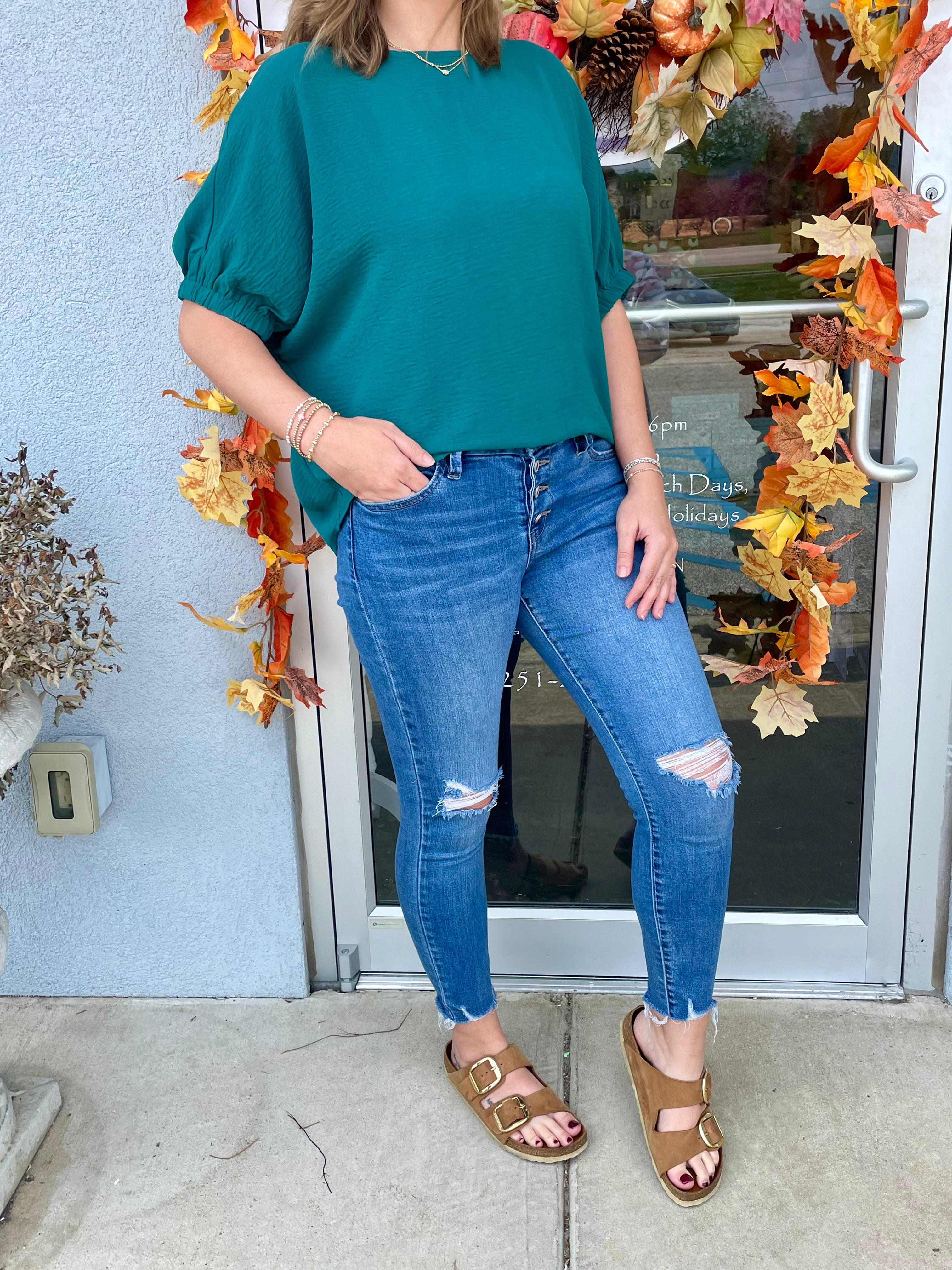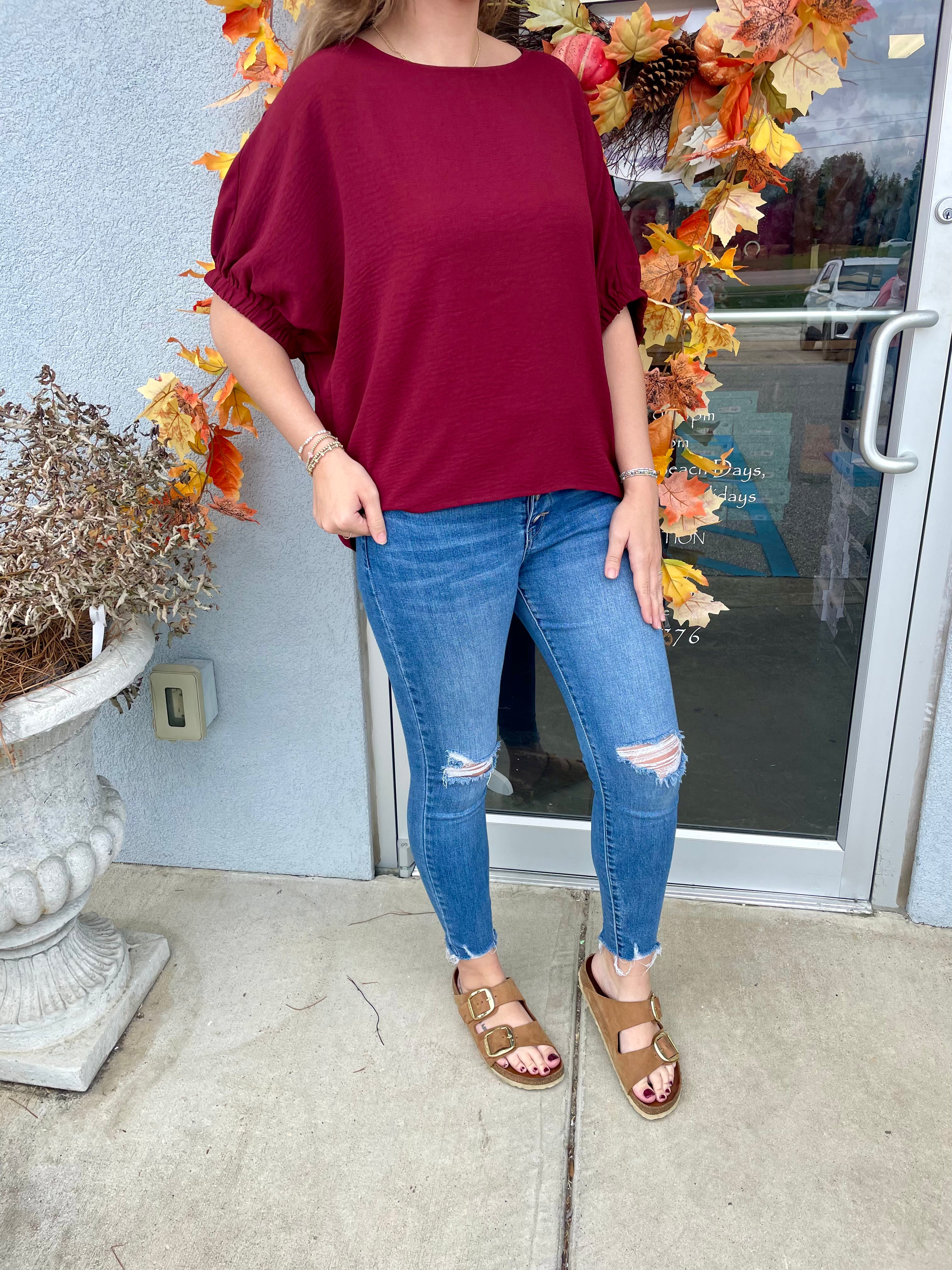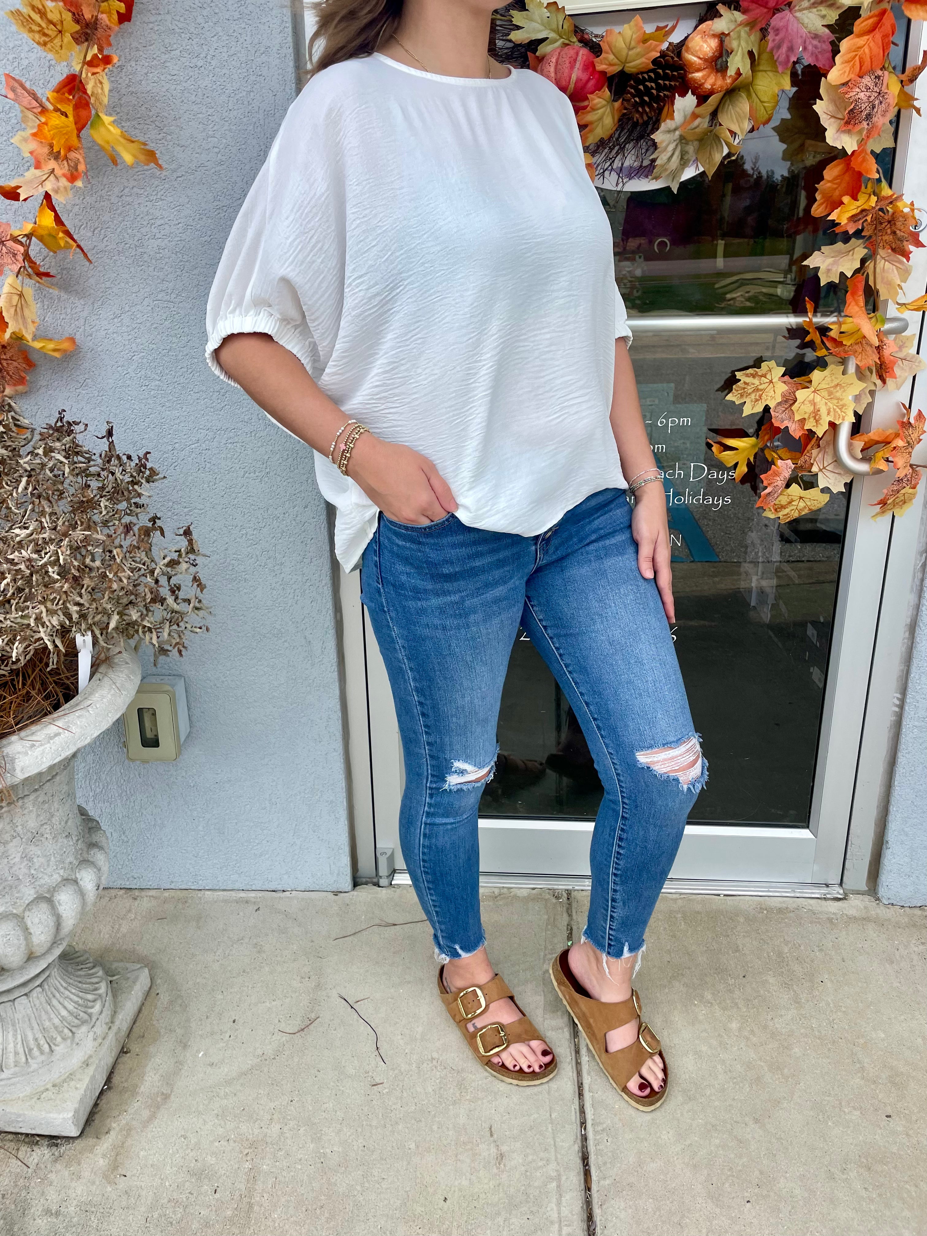 Flaunt your playful side with the Fuji Top! This stylish Dolman Short Cuffed Sleeve Top boasts an elastic band at the sleeve and a flattering elbow length. Available in multiple options, this top delivers both comfort and style. Perfect for...