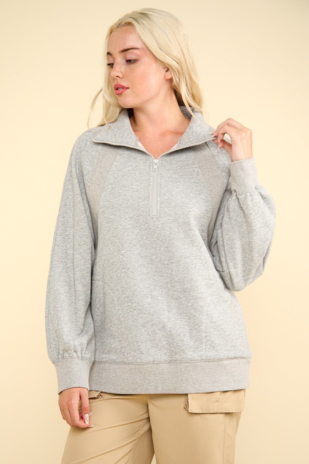 Oversized Sweatshirt Henley Knit Top - Comfy Early Fall Half Zip Up Knit with Side Pockets - Early Autumn Long Sleeve Knit - Transitional Top - Drop Shoulder (Model height: 5"9", wearing a Small) Fabric : 95% Cotton, 5% Spandex...