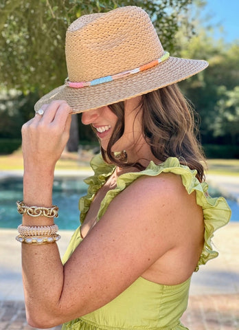 Channel your inner fashion maven with our Raffia Elastic Waist Belt, featuring a chic bamboo-style buckle. This belt combines rustic charm with modern flair, making it the perfect accessory to cinch your favorite flowy dresses or high-waisted jeans. The raffia...