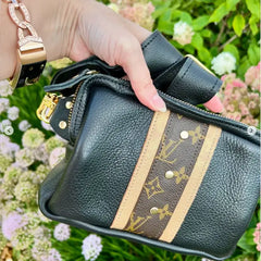 This nylon quilted vegan leather crossbody is so fashion forward! It features a gorgeous rich black color that is oh so soft. It has a chunky gold chain accent that is removable, and it can be used as a carrying...