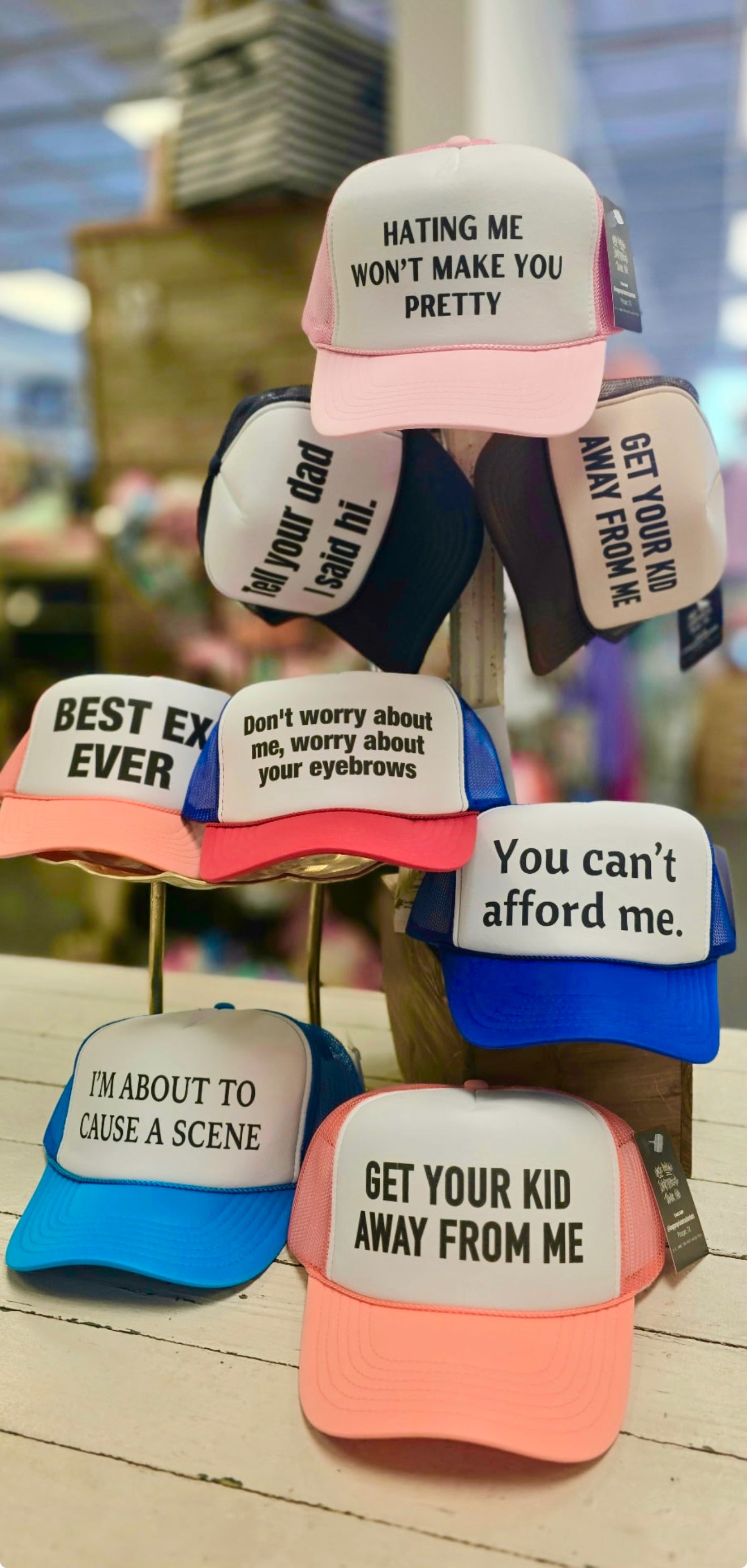 Rhinestones and Christmas go together! This fun stone crusted trucker cap will be perfect to pair with any Holiday outfit!