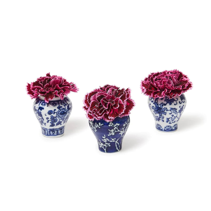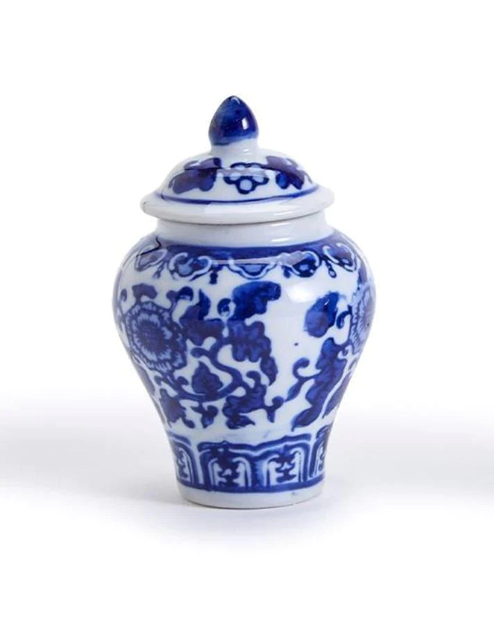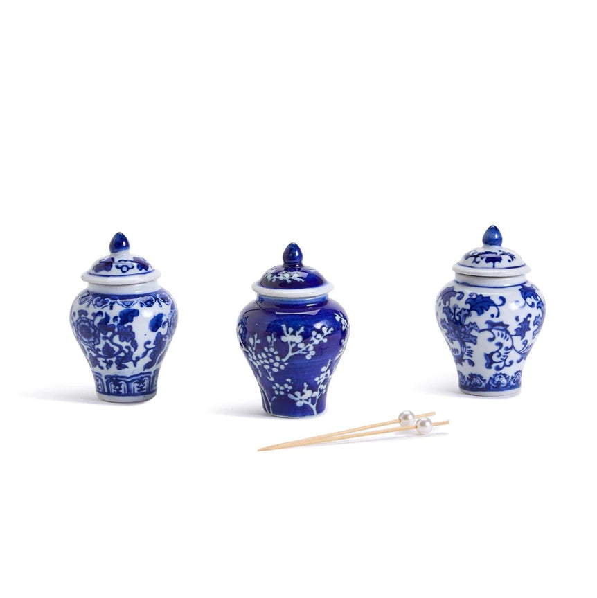 We have shrunk our Large traditional Ginger Jar into a mini pick jar! Makes for a charming statement in your kitchen. Beautifully hand-painted porcelain each packed in a gift box. Blue and White hand-painted porcelain Assorted 3 traditional Floral Patterns...