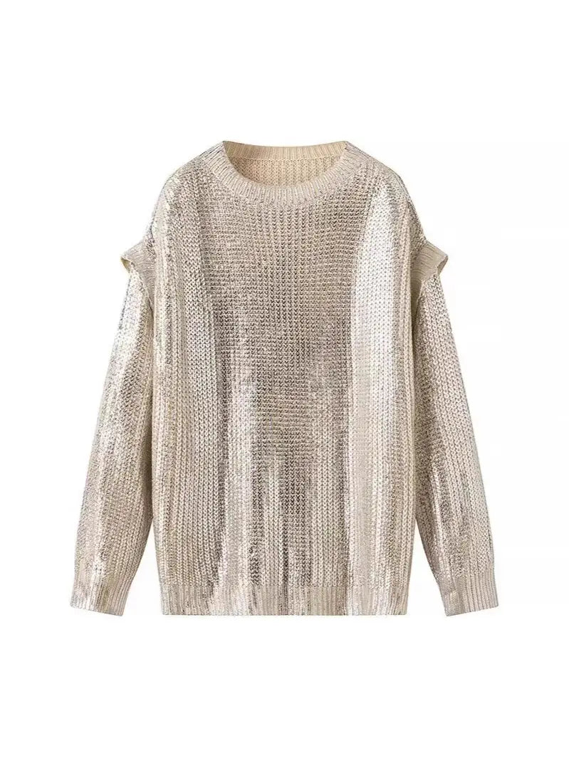 Shiny Retro Luxury Metallic Pullover Sweater - Soft and Comfy