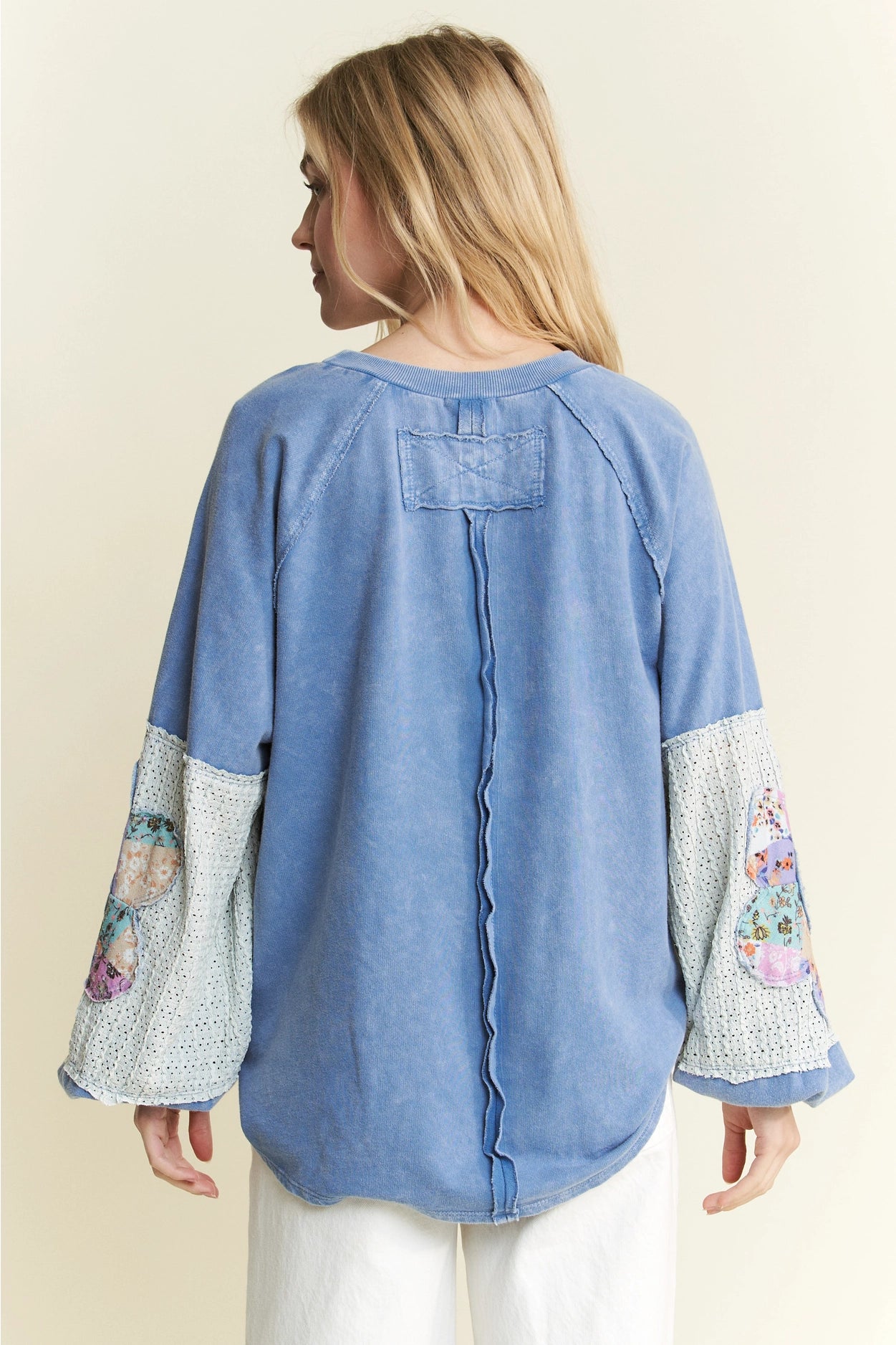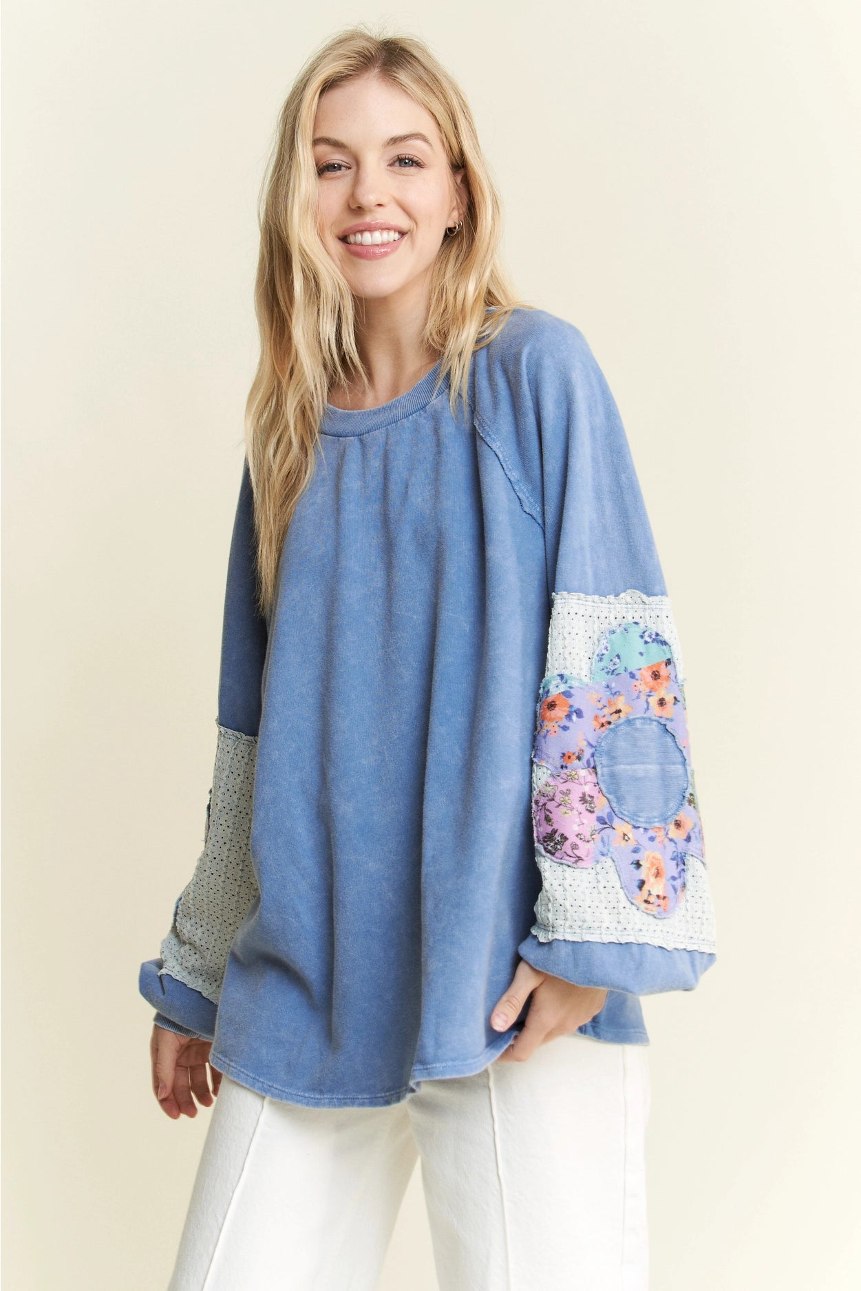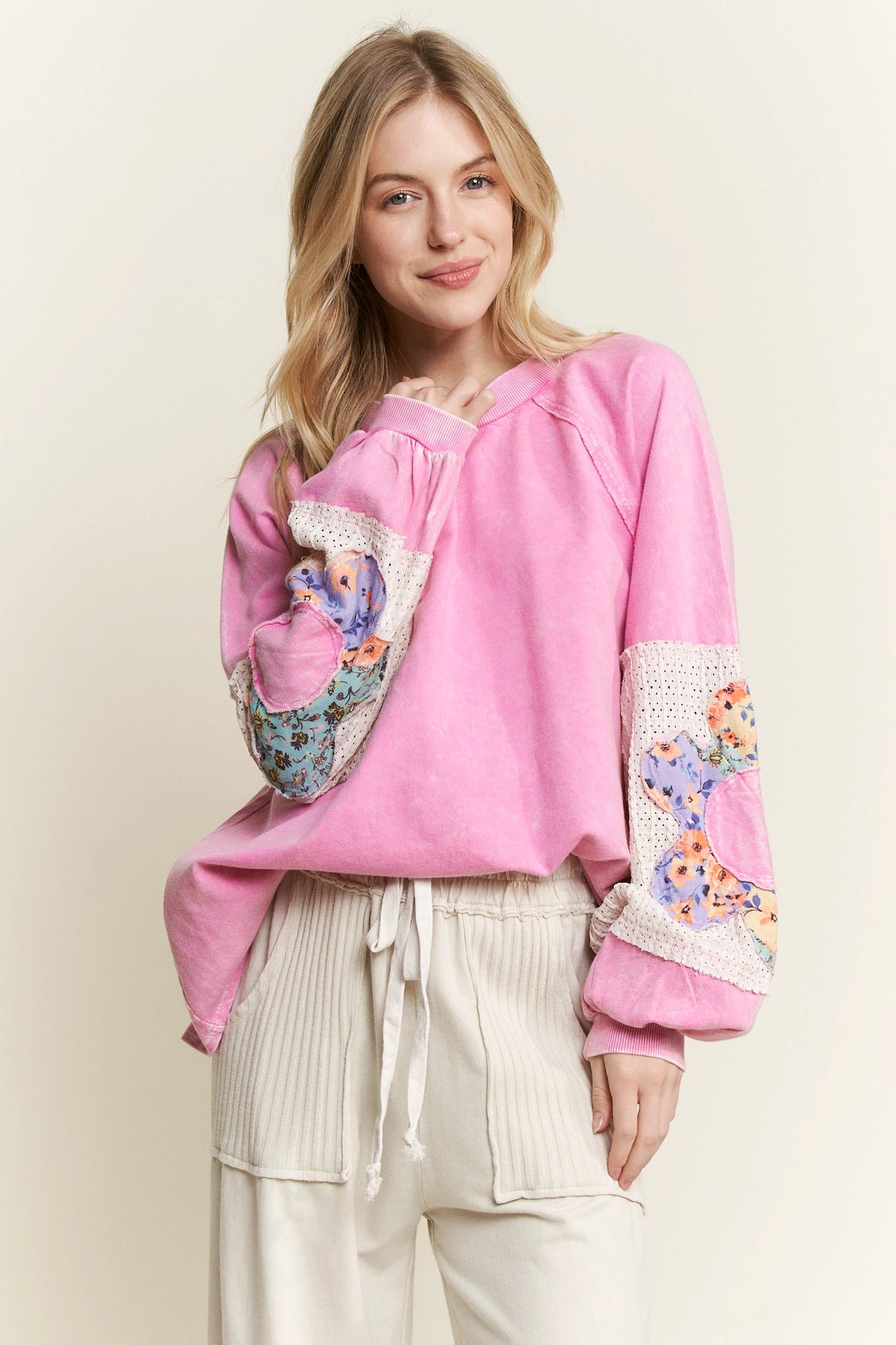 Mineralwash Floral Patched Sleeve Long Sleeve Top