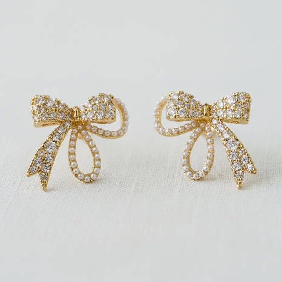 Vintage Inspired Pearl and Cubic Zirconia Bowknot Earrings