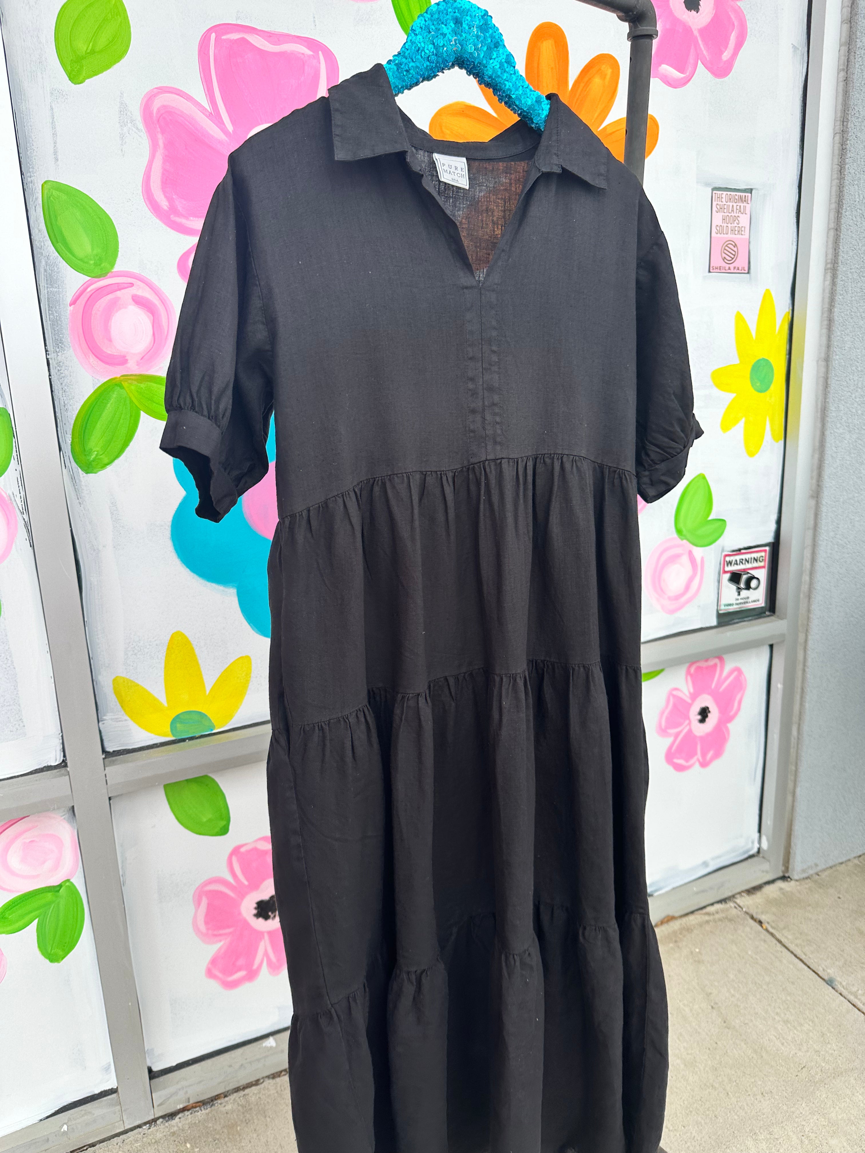 Button down, allover vintage distressed effect, 2 front chest flap pockets, roll up sleeves, adjustable waist drawstring tie, round hemColors: Light Olive or BlueSize:Small(2-4), Medium(6-8), Large(10-12)Fabric: 100% TencelLength: 36" on a Small
