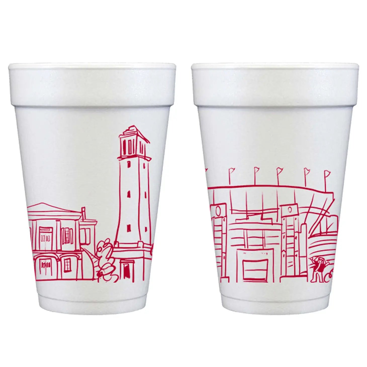 Our hand-drawn foam cups show landmarks of university of alabama campus and tuscaloosa} alabama. Printed in crimson ink these make a great tailgate cup graduation party cup. Cup size: 16 oz foam cup Packaging: 10 cups per sleeve  Officially licensed...