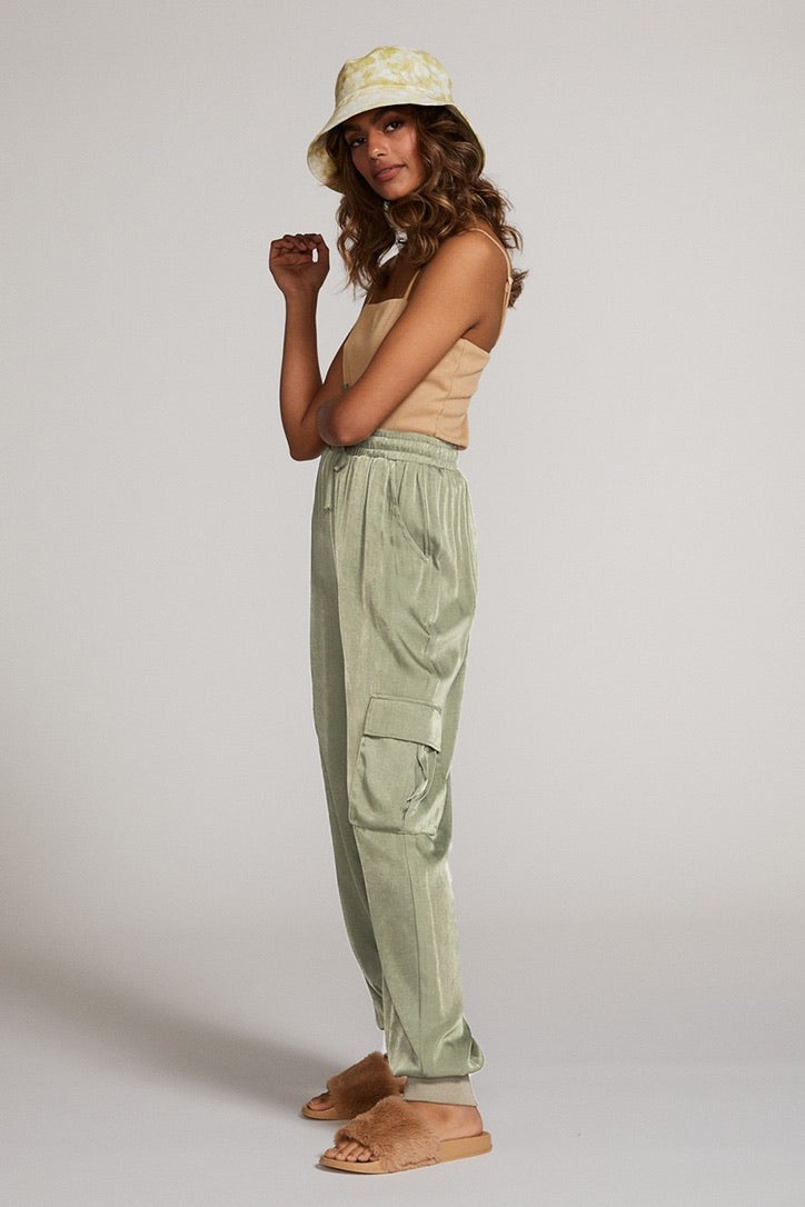 Stay comfortable and stylish in our Salmon and Sage Satin Jogger Pants! Featuring a dreamy 65% Poly, 35% Cotton blend, side cargo pockets for extra storage, a drawstring waist for an adjustable fit, ribbed cuff detailing and hand pockets, you're...