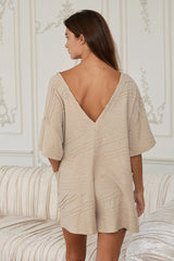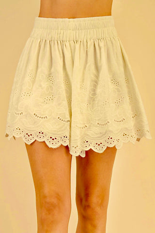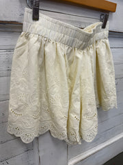 Soft knit two piece set with pearl detailing. The skort is 13" long on the Large and has side pockets.