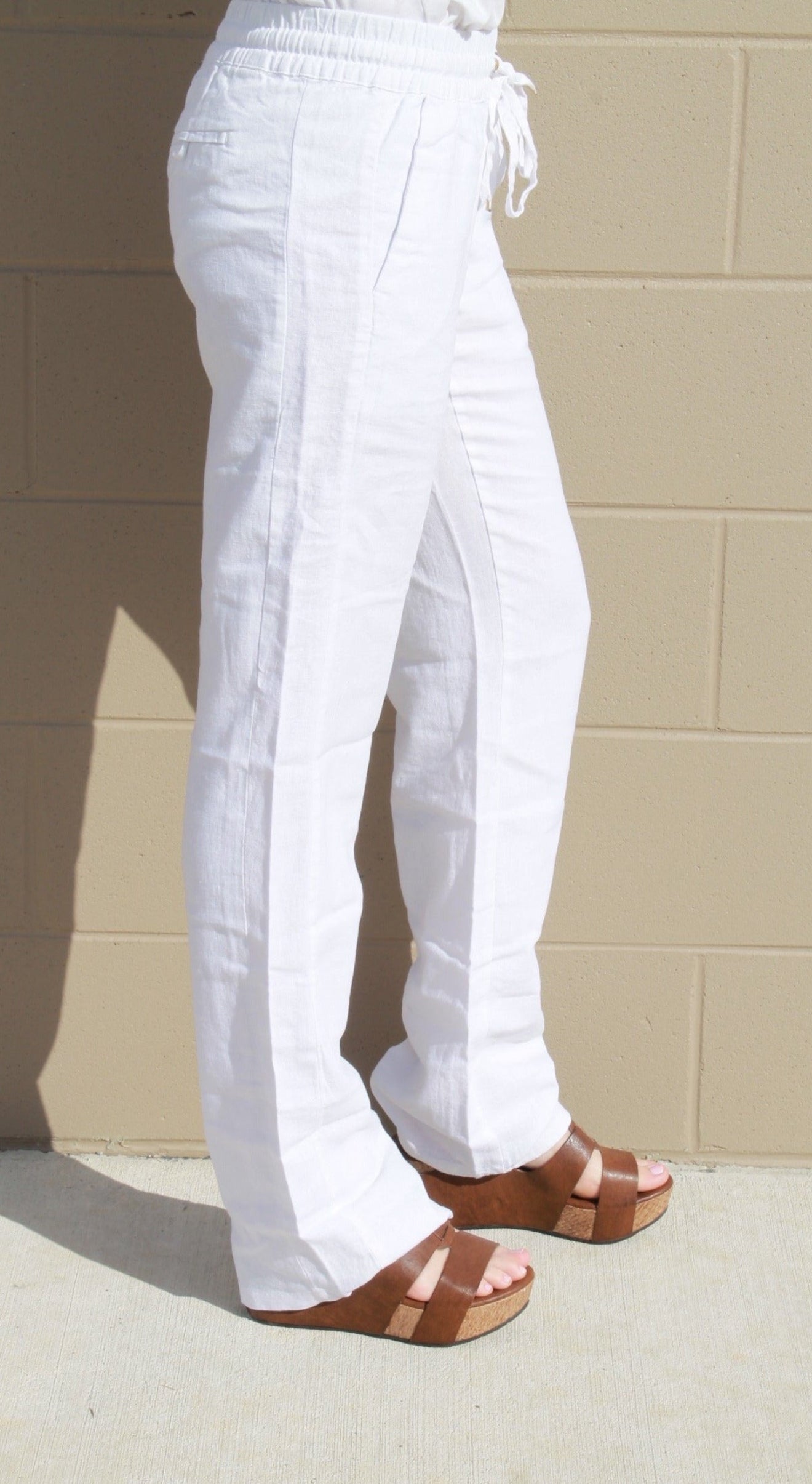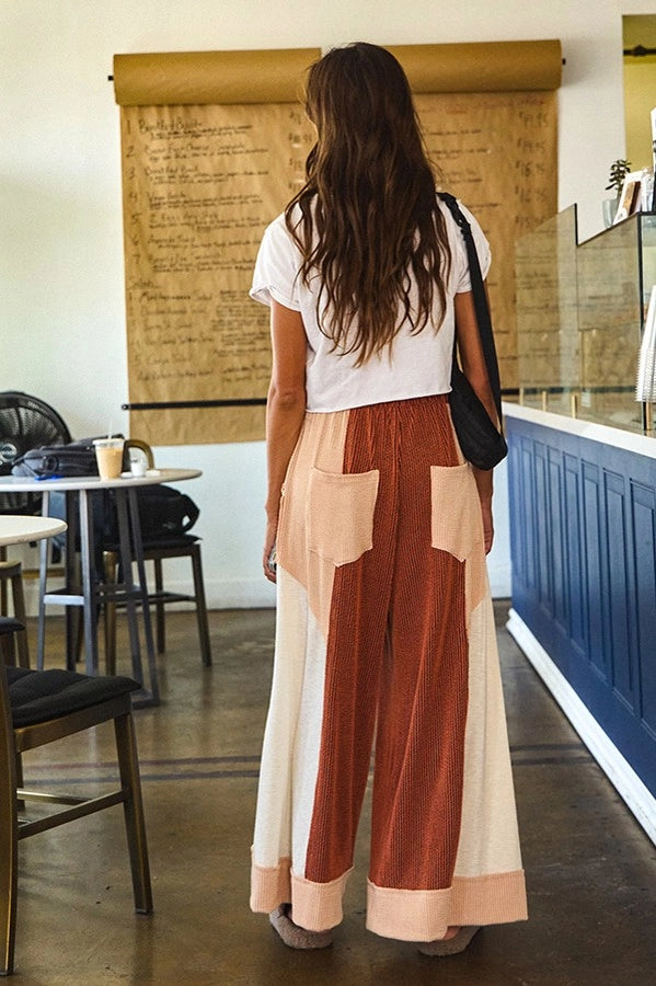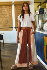 Breezy wide-leg pants featuring a bold brown and white vertical stripe, crafted from lightweight nylon-cotton blend for exceptional comfort and effortless styling. Features: • Fabric: 100% polyester Color: Brown and White Length: Inseam 29" Large Sizing: Small (4-6) Medium (8-10)...