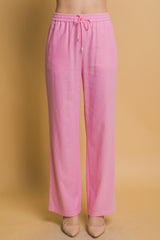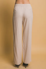 Drop Shoulder Puff Sleeve Long Sleeve Pullover and Wide Leg Pants Set - elastic waist pants with drawstring