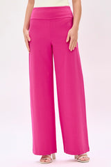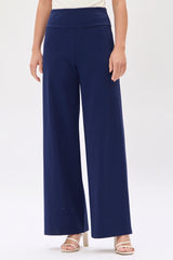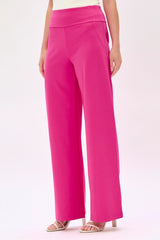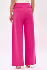 High-Waist Straight Pants - some stretch - wide leg with pockets - front zip