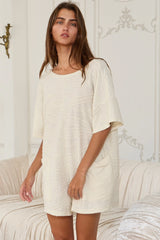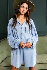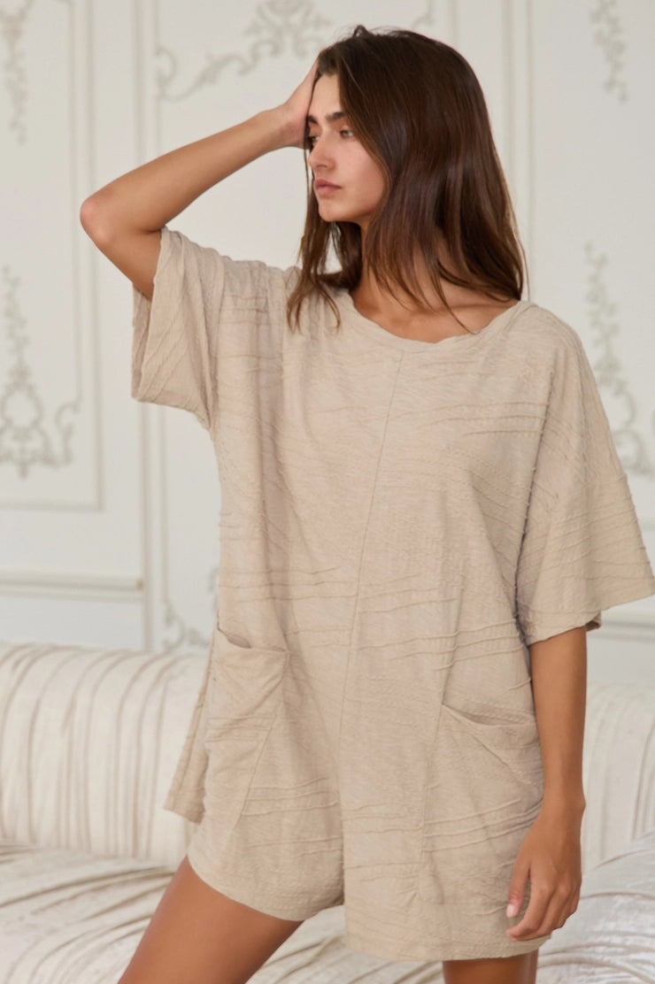 Textured two piece set TOP - Oversized - Collared - Drop Shoulder - Long Sleeve with cuff at sleeve and waist BOTTOM - Elastic Waist W/ Drawstring - Wide Leg - Side Pockets (Model height: 5"10", wearing a Small) Color:...