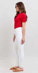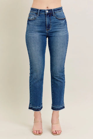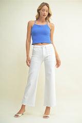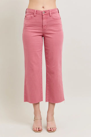 Judy Blue Mid Rise Tummy Control Wide Leg Crop Denim Wide leg fit: cut wide throughout the leg, beginning to flare around the mid-thigh and then continuing down to a wide leg opening Material: 91% Cotton, 7% Polyester, 2% Spandex...
