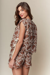 These straight-legged cropped cargo pants feature a bold leopard print, adding a touch of wild style to any outfit. With functional cargo pockets and a comfortable fit, they combine fashion and practicality for everyday wear. Back of Waist is Elastic...