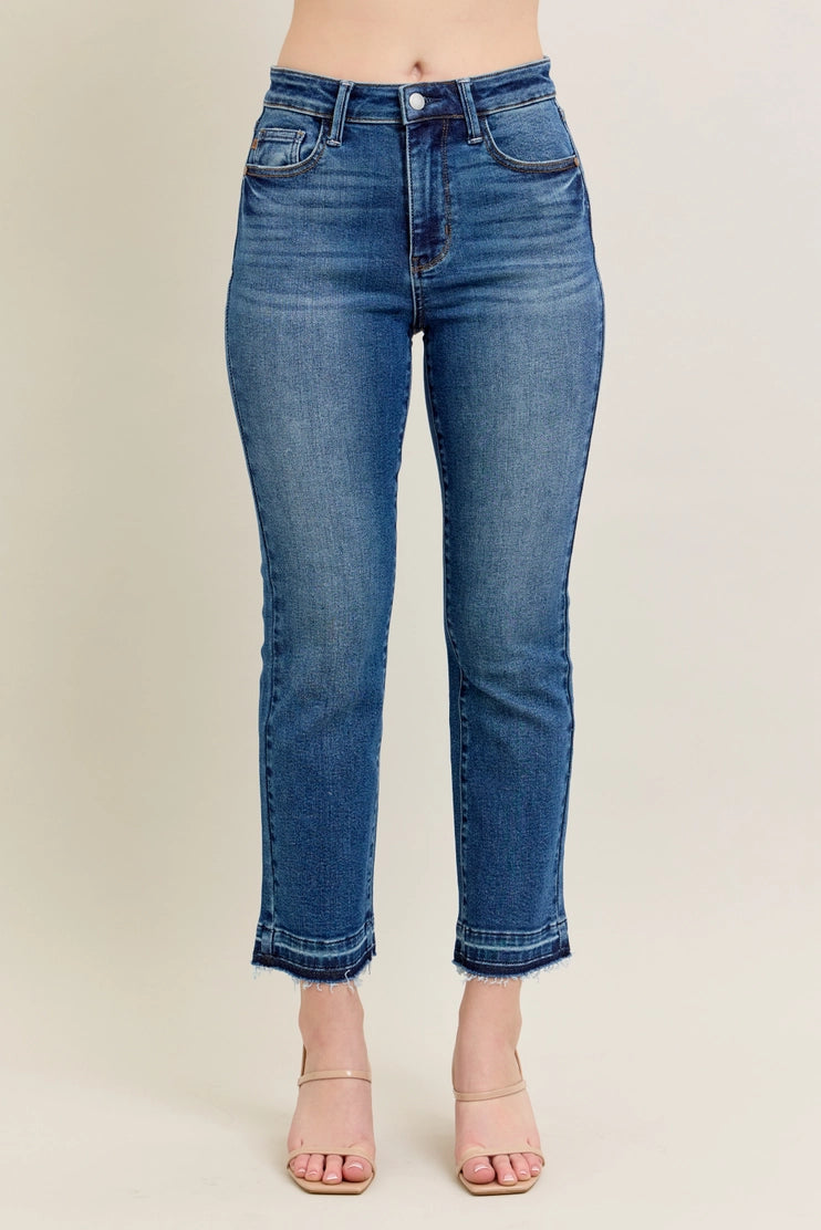 Tummy control high rise ankle wide leg jeans Comfort stretch denim, high rise waist, seamless waistband, frayed hem, ankle length, wide leg jeans Tummy control feature with inner panels for shaping and smoothing F. Rise: 10 1/4" / inseam: 27...