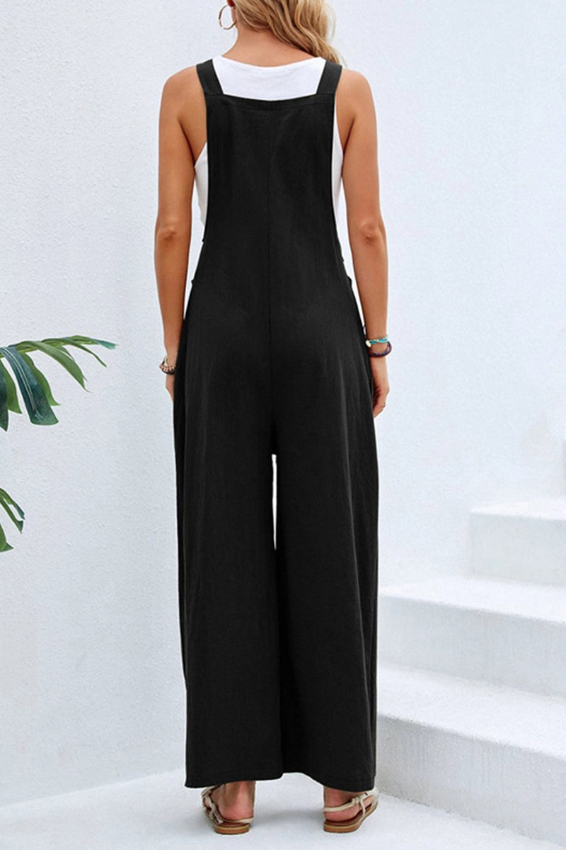Sleeveless jumpsuit with body-hugging, athletic knit fabric to support your every move. Adjustable straps, scoop neck, and flare leg