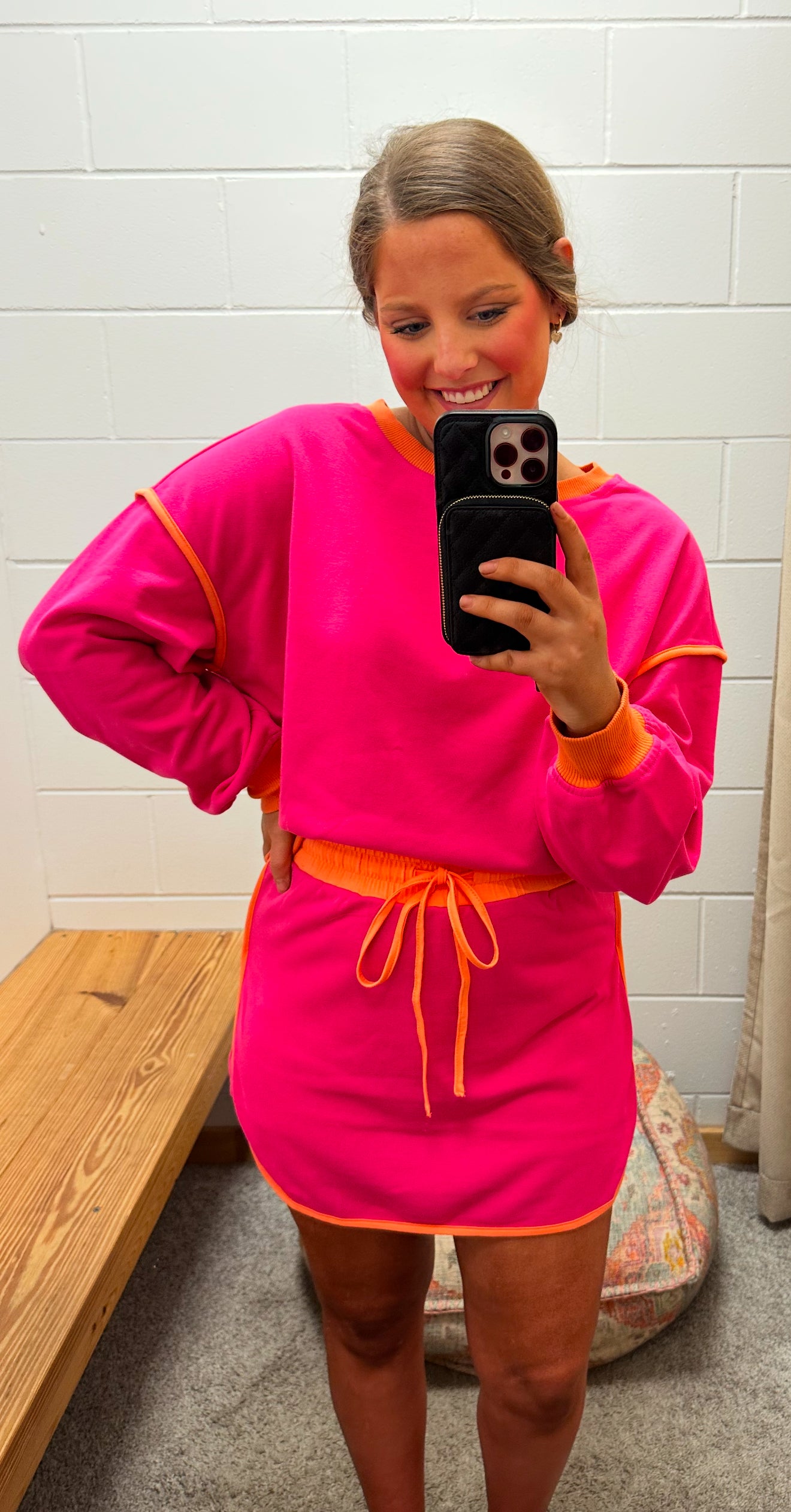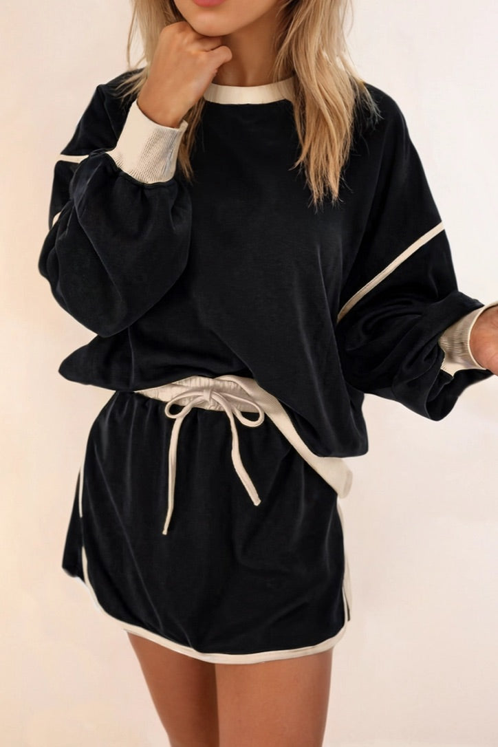 Score a fashion win in our Kournikova Set! This two-color set features a loose pullover top that creates a striking contrast with the lace-up waist skirt. You'll effortlessly turn heads with this unique and playful outfit. Colors:Pink/Orange, Green/Cream and Black/Cream...
