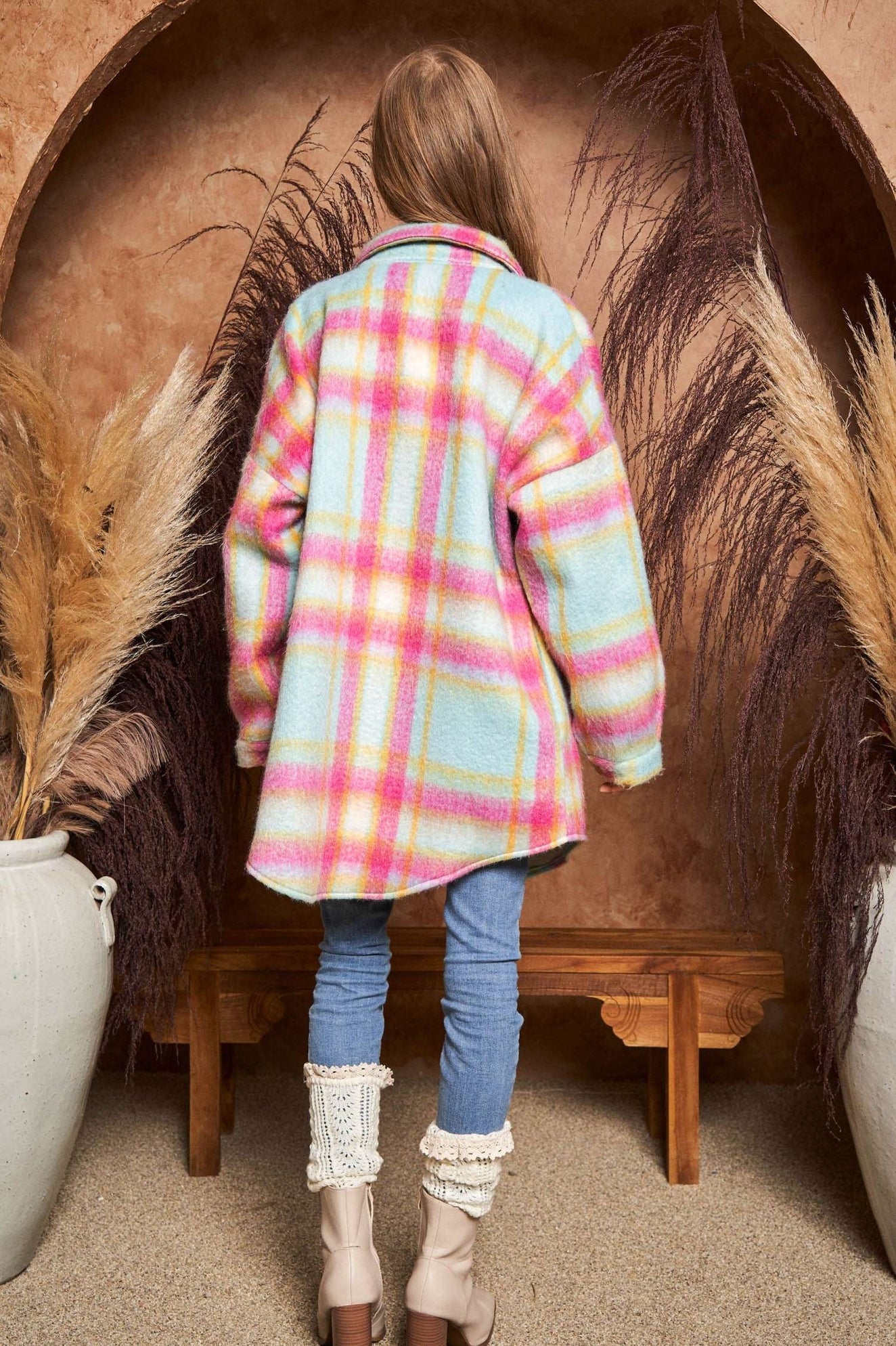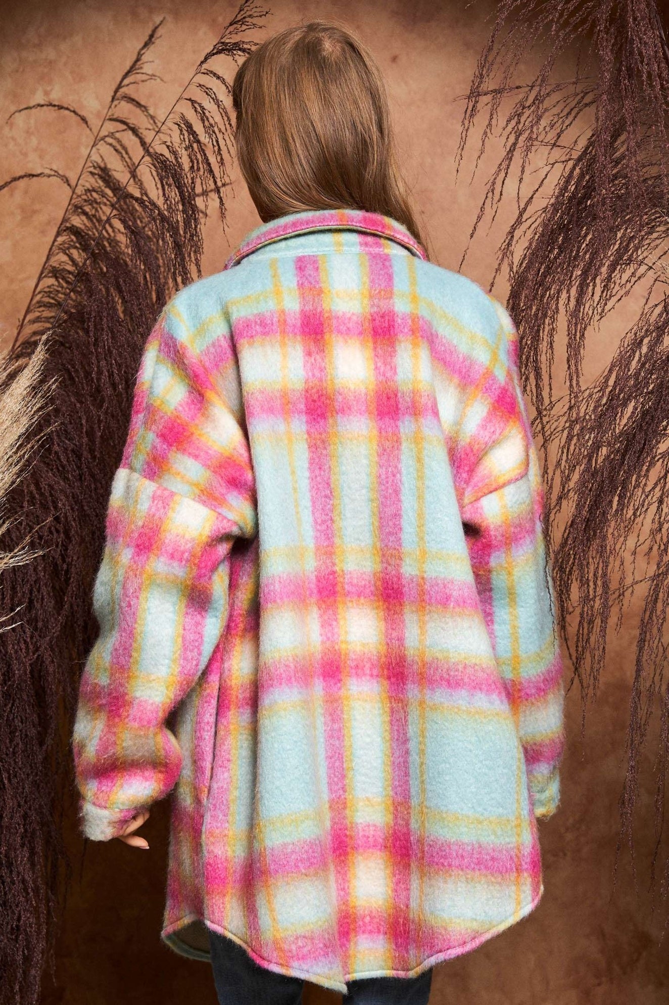 PLUS SIZE PLAID BUTTON DOWN LONG SLEEVE POCKET DETAIL JACKET SHIRT SHACKET