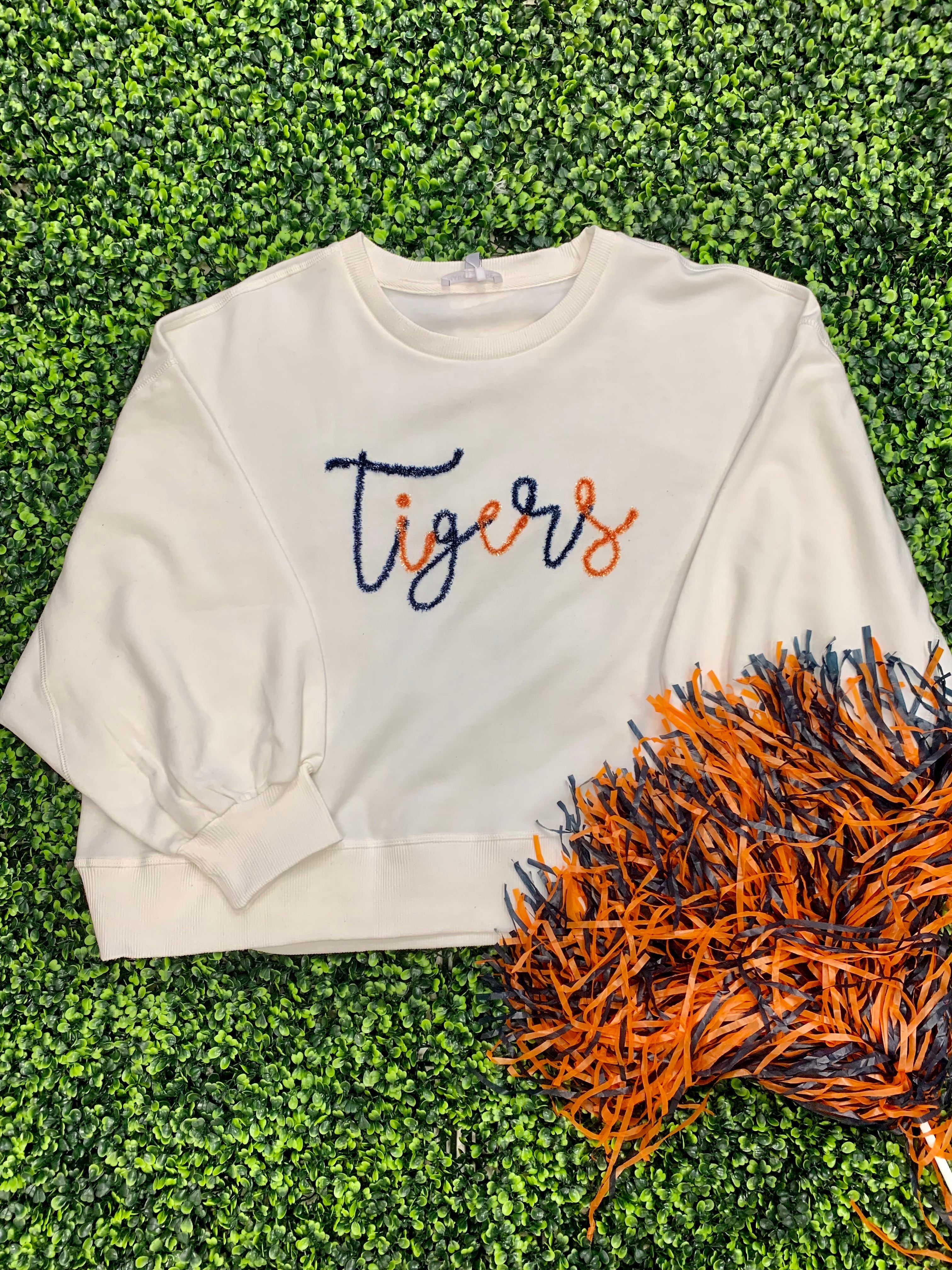 Long sleeve soft sweatshirt that sits at waist - ribbed at cuff and waistline. Gameday colored for Auburn.