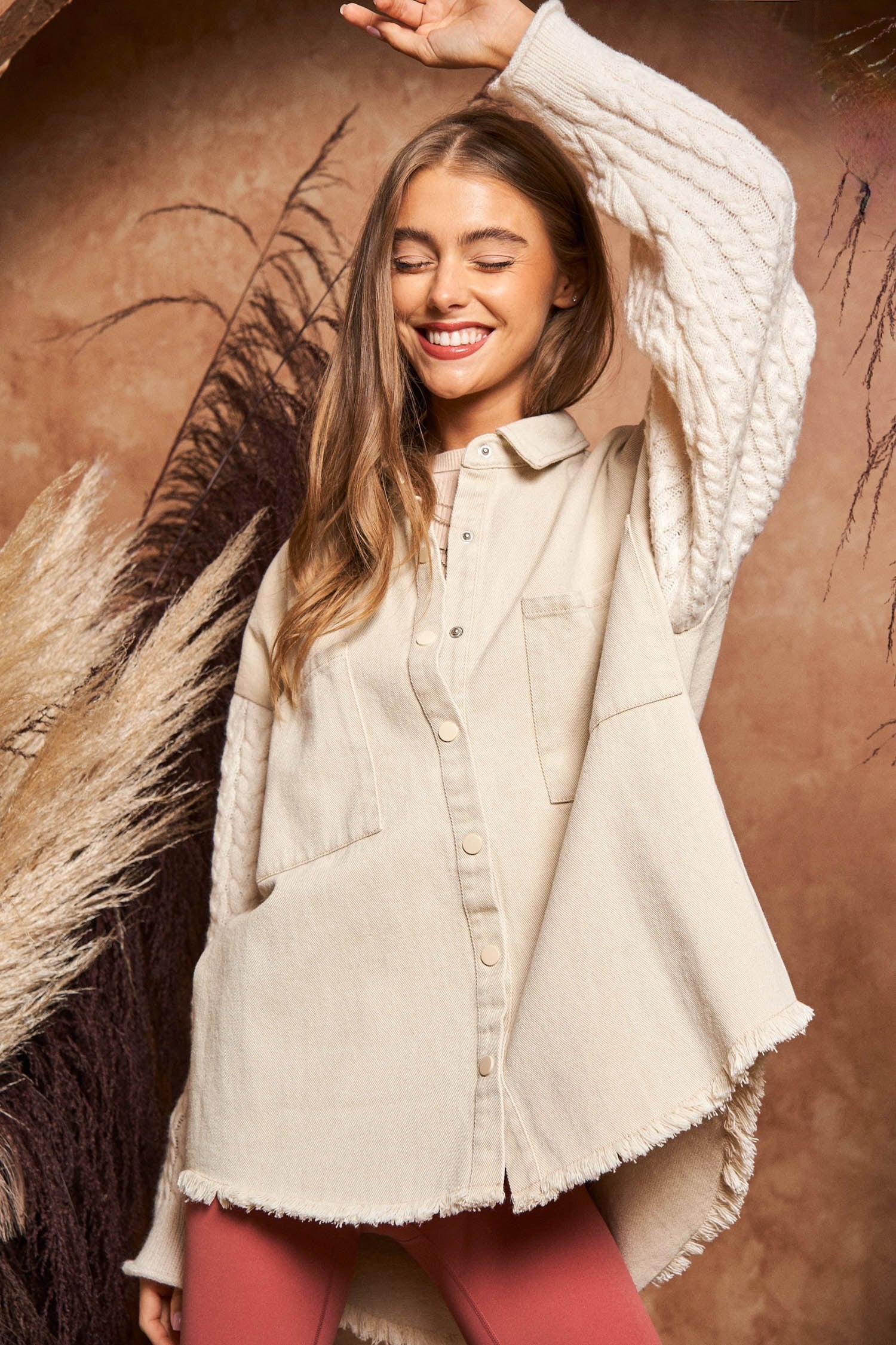 Plus Size Linen Half Button Detail Top with Frayed EdgeFit & Model Notes:• Model is 5'10" and is wearing an XL.• All Measurements are approximate.• Not Lined.Fabric Contents:• 55% Linen• 45% Rayon Colors: Oatmeal or Black Sizing: XL (14-16) 1XL...