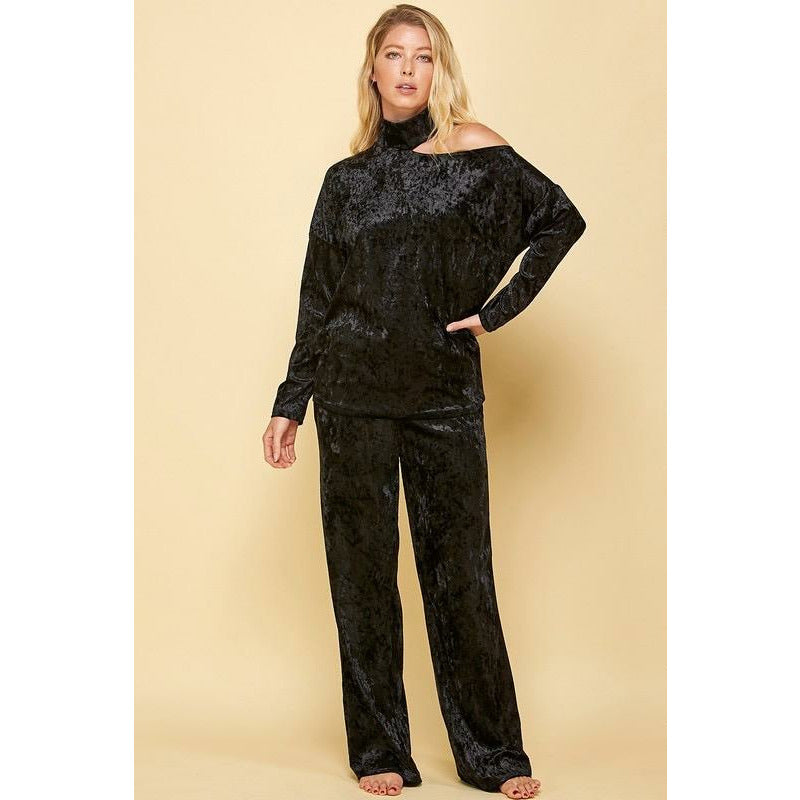 Pink velvet long sleeve top with a scoop neckline, elastic trim on hem and wrist, drop shoulder, embroidered Simply Southern logo across the chest, and woven Simply Southern patch on the side hip.