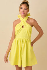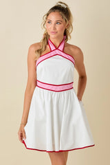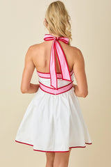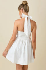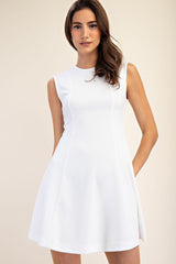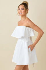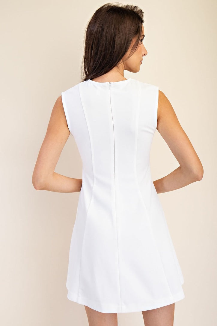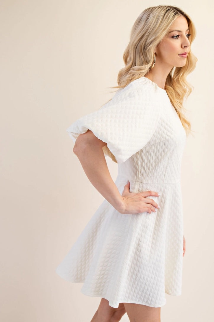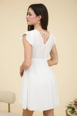 A scalloped V neckline mini dress features a puff short sleeves and a fitted waist with a self-tie sash. The A-line skirt adds a flirty finish, while the hidden back zipper ensures a seamless fit. Elastic at the end of...