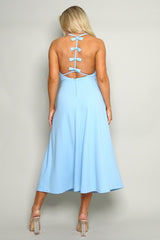 Draped Neck Sleeveless Midi Dress tie at the waist Model Height: 5'8" Wearing Size Small Color: Mocha Fabric: 100% Polyester Sizing: Small (2-4) Medium (6-8) Large (10-12) Length: 46" Large (Shoulder Seam to Hem )