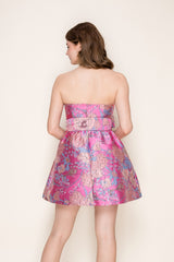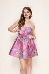 A printed textured woven midi dress featuring strapless, circle skirt and back zipper closure  Fabric: 100% Polyester - Lined  Size & Fit - Model is 5`8" And Wearing Size Small - Measurements Taken From Size Small - Approx. Length: 45"...