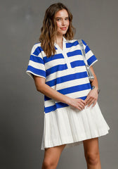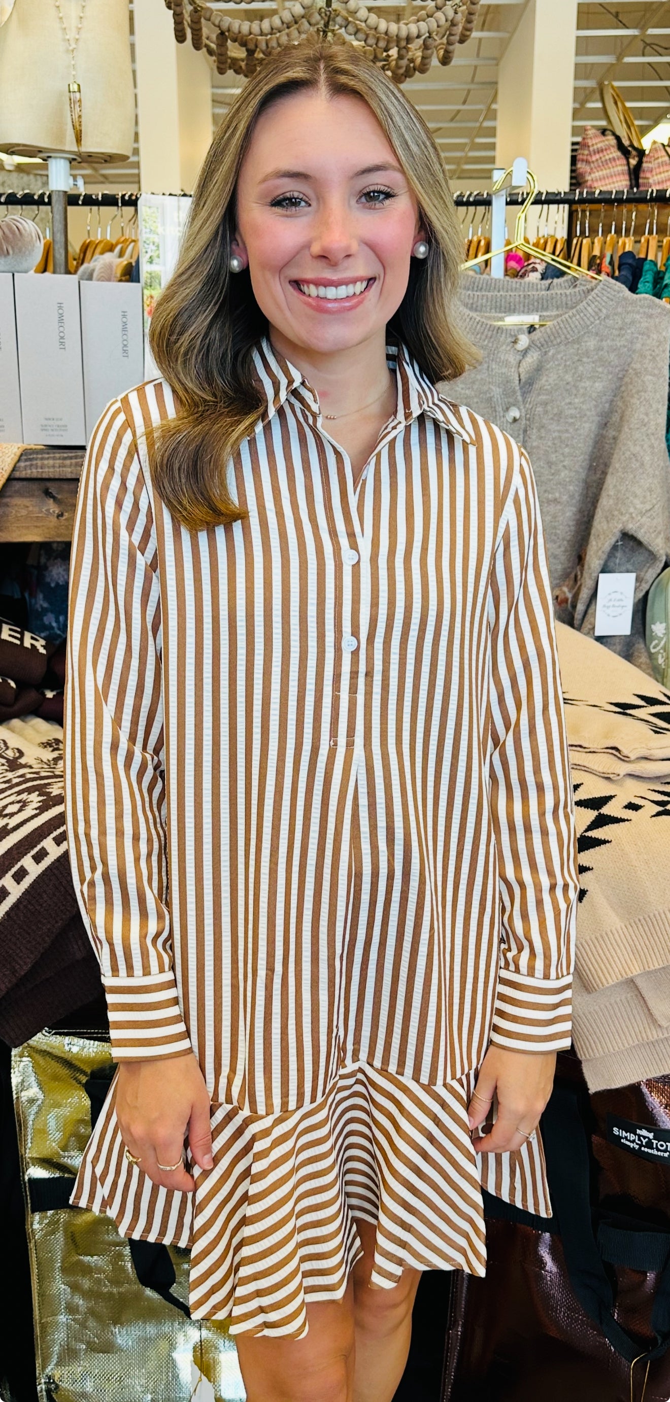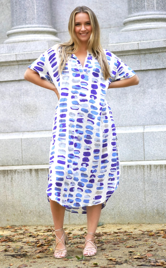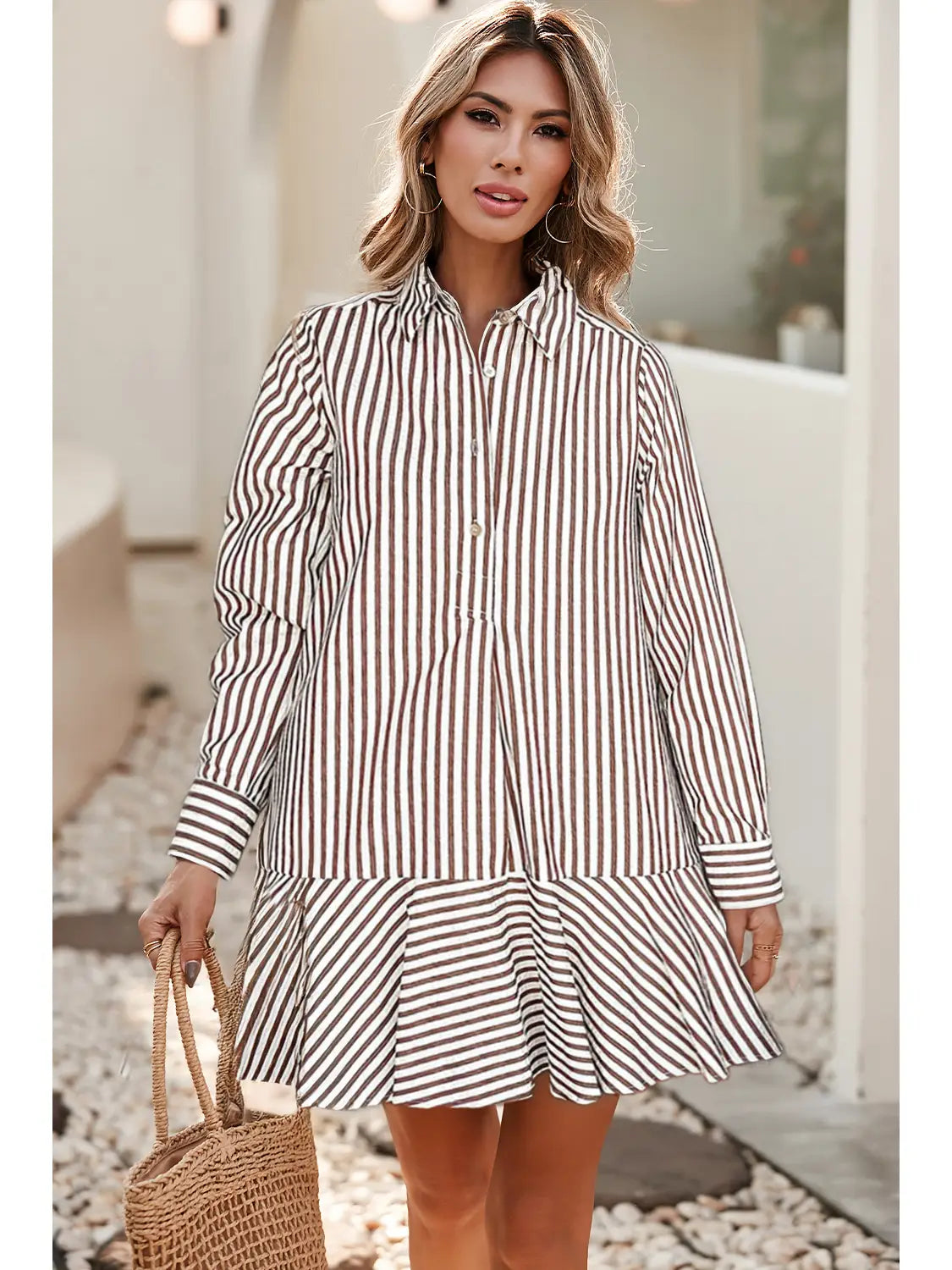 Stay effortlessly chic in this Cotton Striped Button Down Tunic Dress. Crafted from a breathable cotton fabric, this dress offers a lightweight and comfortable feel, perfect for warm days. The timeless striped pattern and button-down front add a touch of...