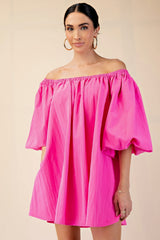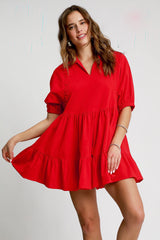 Just a touch of glam with this beautiful but simple dress. Perfect for any occasion. Comes in three rich colors.  Ruffled Neck Dress with Long Bubble Sleeves - pockets  Model Height: 5'8" Wearing Size Small - Fabric: 100% Polyester  Colors:...