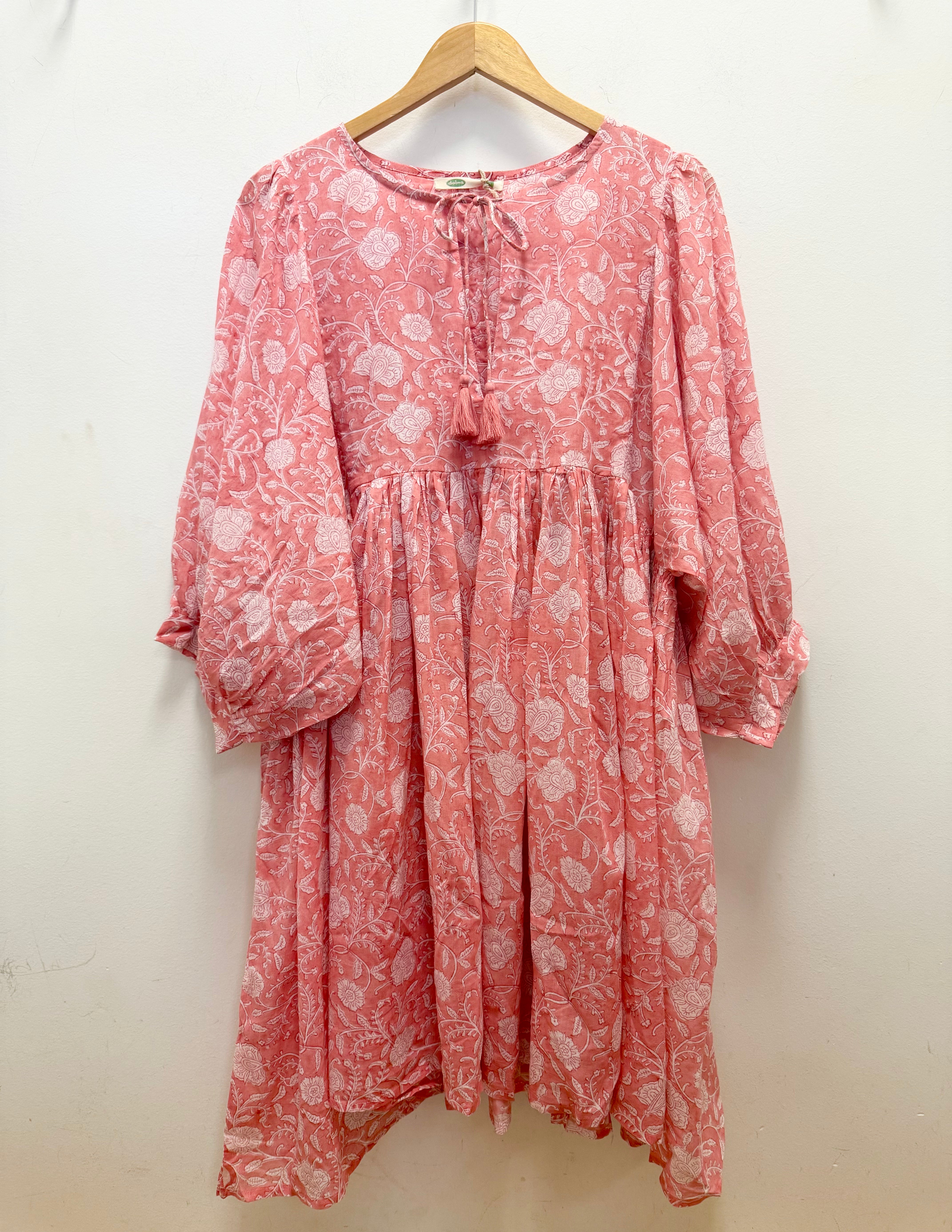 Roomy Cut Multicolor floral print Split neckline with smocked yoke detail Long puff sleeves with elastic cuffs Piping details Lined  Fit Model Notes Model is 5'10 and is wearing a small  Length: 30" Shoulder Seam to Hem (Large) Fabric: 83%...