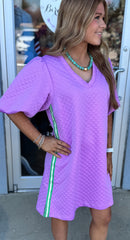 Breezy, bold, and made for game day. This shirt dress is crafted from lightweight airflow fabric with a crinkle texture that keeps you cool and comfortable all day long. Featuring a collared neckline, rolled short sleeves, and a full button...