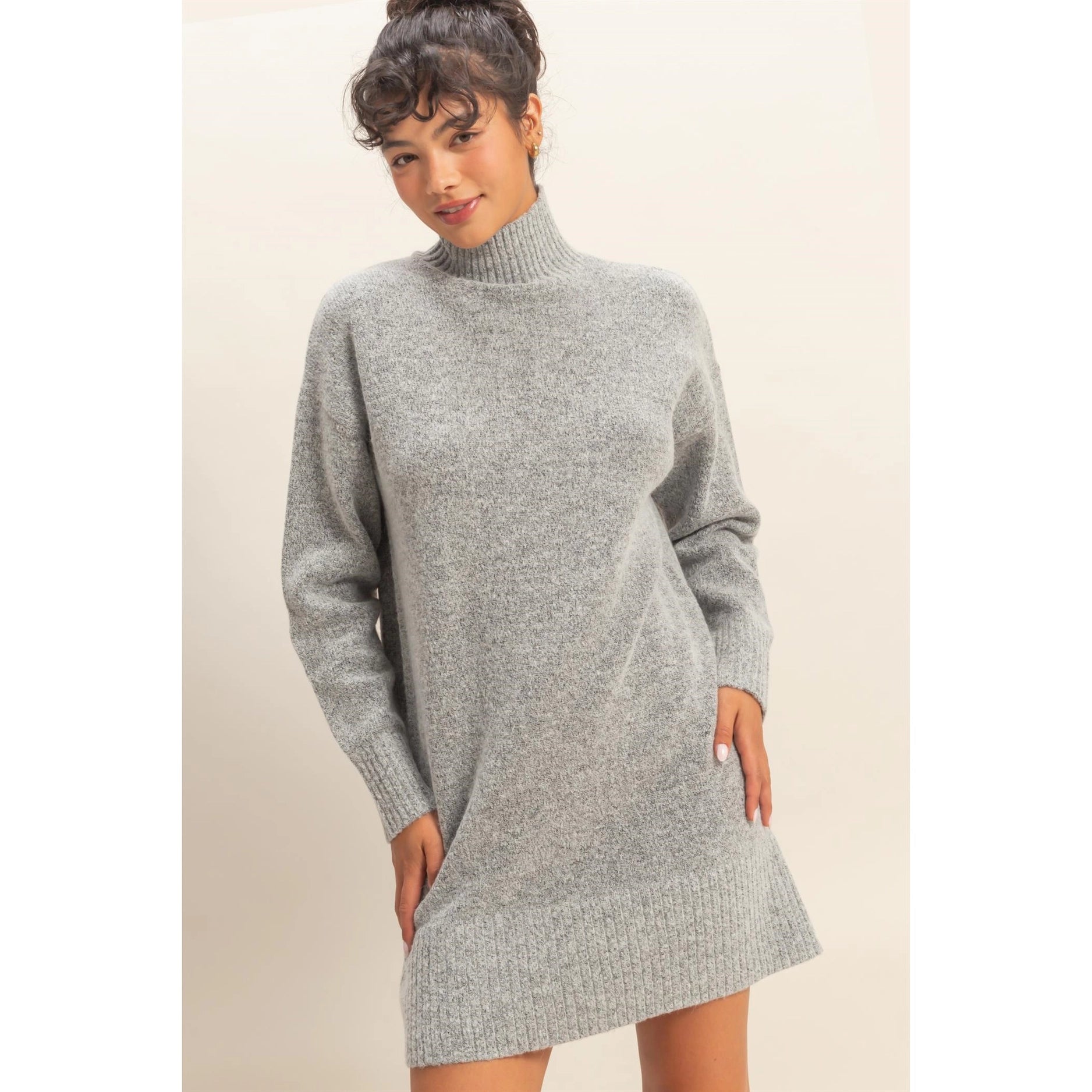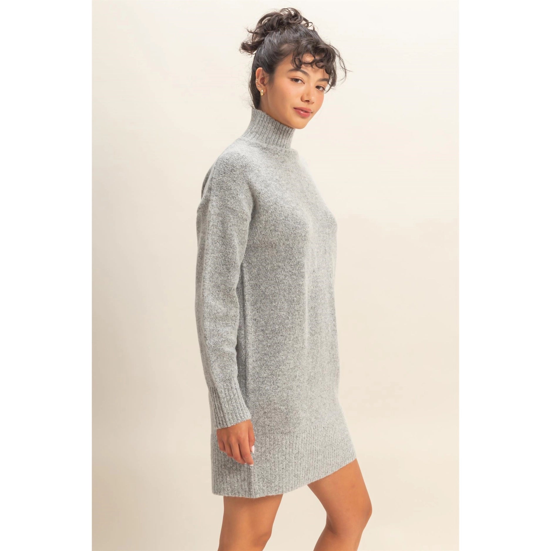 A quintessential winter essential, this high neck sweater dress offers a relaxed silhouette, perfect for enhancing comfort while staying stylish. The ribbed detail at the hem and cuffs highlight its texture, ensuring a snug and cozy fit. It's superb for...