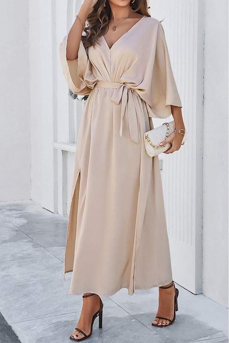 Soft Satin Fabric: Luxurious and smooth texture for an elegant look. Wrap Design with Tie Waist: Flattering fit for all body shapes. Kimono Sleeves: Adds a touch of sophistication and comfort. Side Slit Detail: Enhances movement and creates a chic...