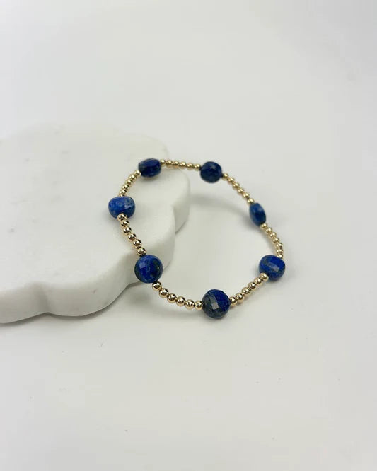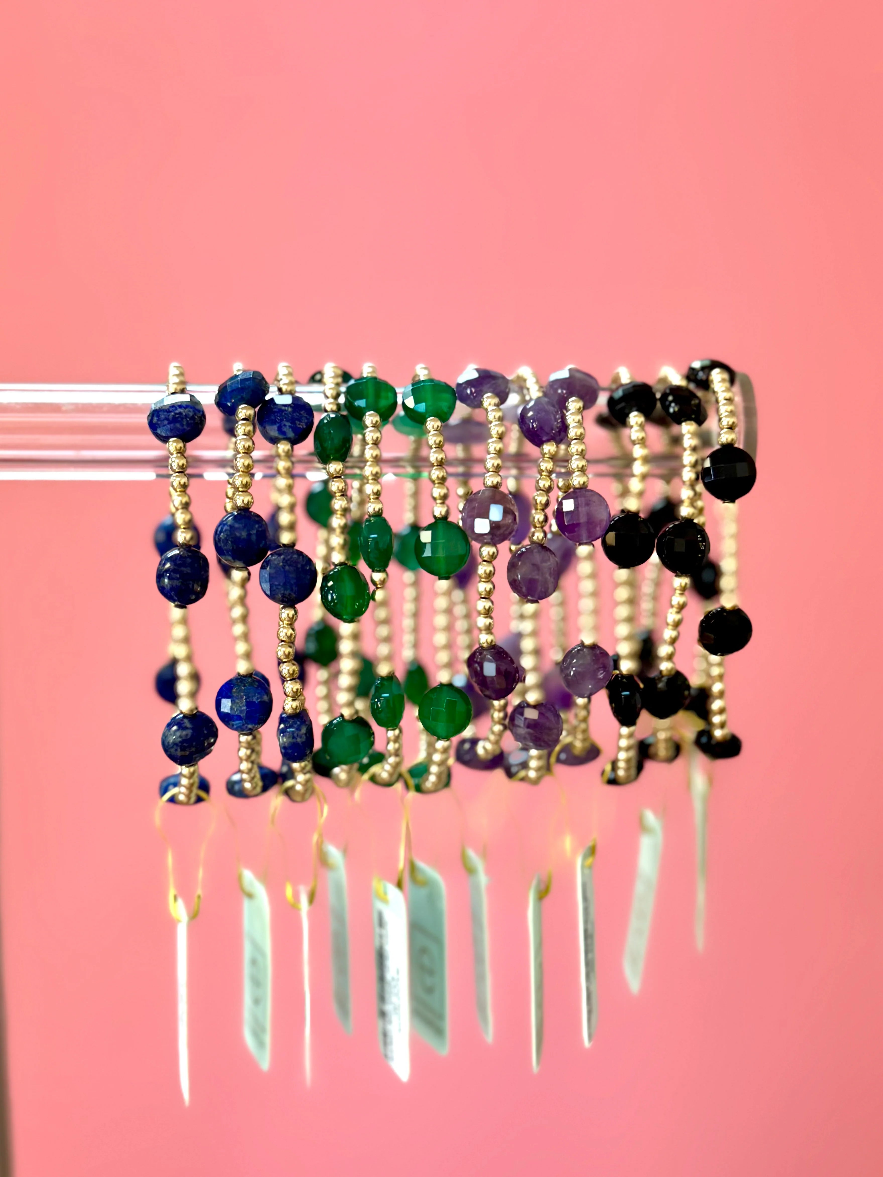 The Admire bracelet is the perfect stacking add-on to any look. Made with 3mm, 14kt gold-filled beads and 8mm faceted gemstones Worry-free wear‚ which means sleep, shower and sweat in it Hand beaded on high performance elastic for a slight...