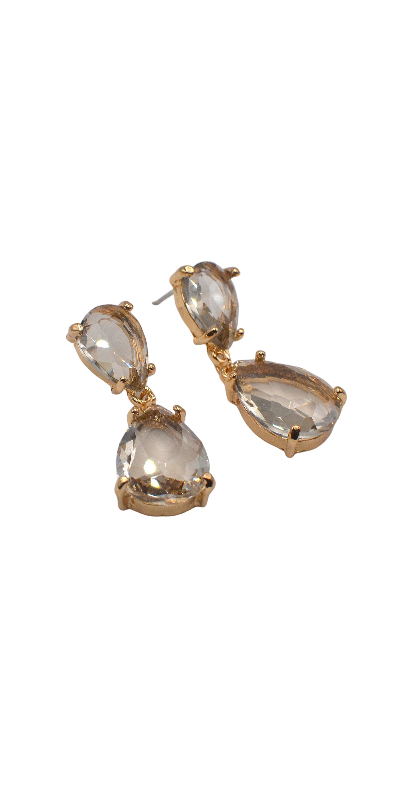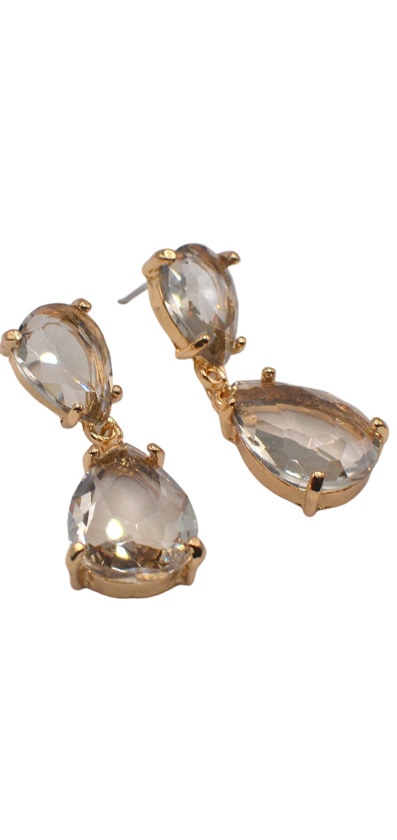Teardrop Glass Crystal with bow Linked Dangle Earrings Chic and cute this dangle design is a great accessory to wear all day and into the night! Glittering crystals catch the light beautifully, adding major sparkle, making this crystal earring spectacular!