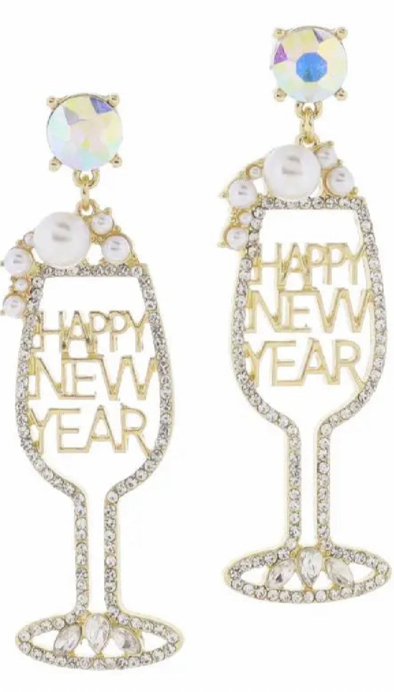 Celebrate in style with our Pave Crystal 'HAPPY NEW YEAR' Glass & Pearl Bubbles Earrings. These 3" dangle earrings are not just an accessory, they echo the excitement of the New Year. Complemented by glass and pearl bubbles, these earrings...