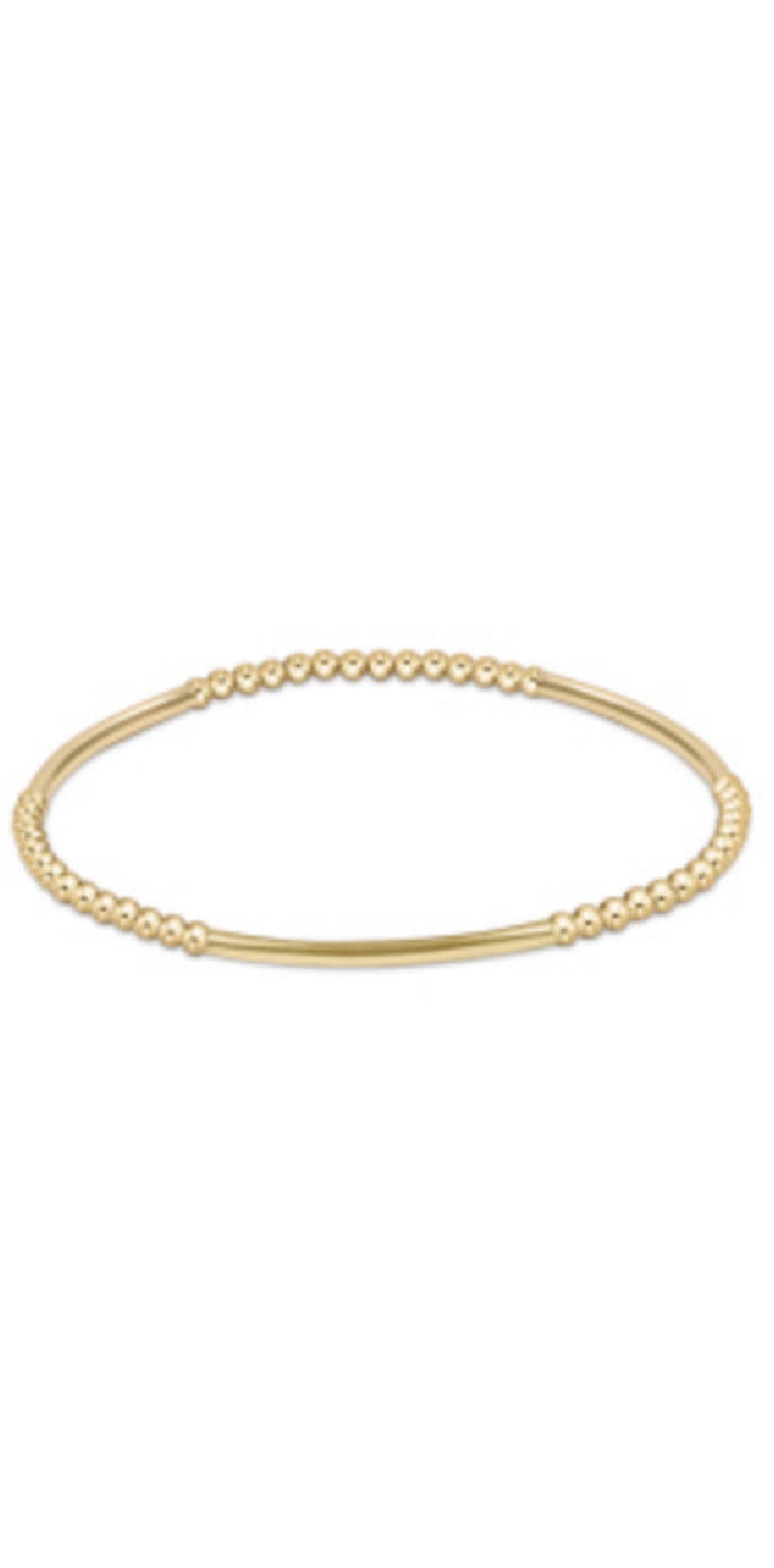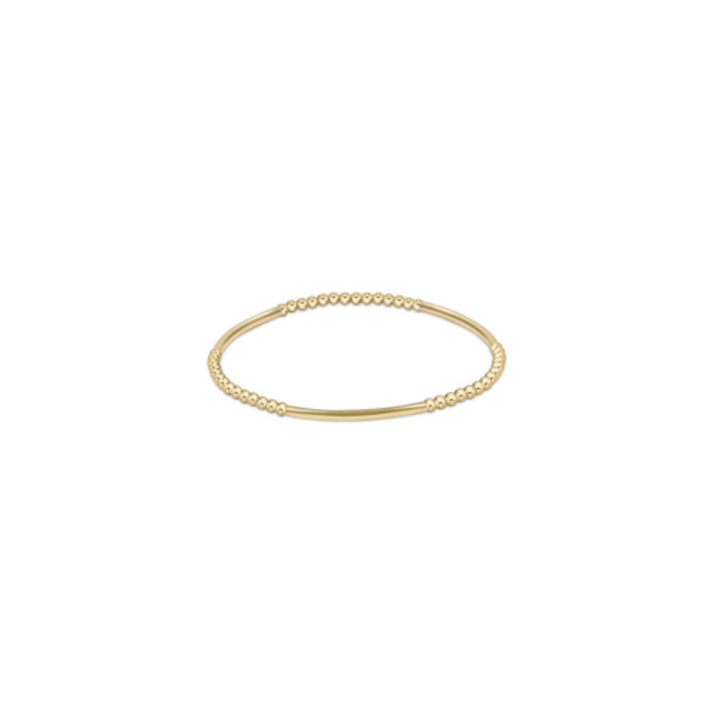 All you need is less. Made with 3mm, 14kt gold-filled beads Worry-free wear‚ which means sleep, shower and sweat in it Hand beaded on high performance elastic for a slight stretch to easily roll on and off your wrist Measures:...