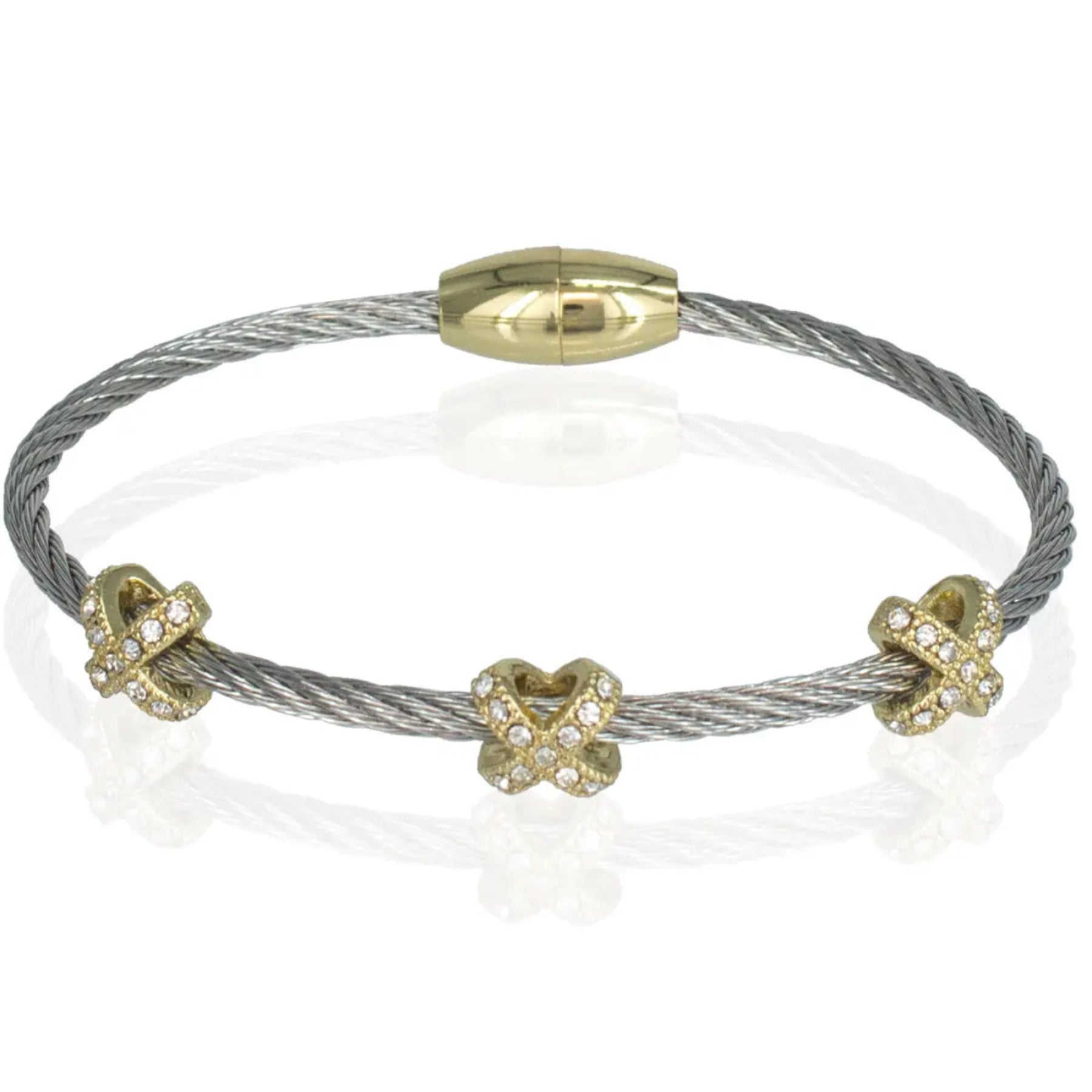 Little things mean a lot. Made with 3mm sterling silver beads and our Signature Cross Gold Charm Worry-free wear‚ which means sleep, shower and sweat in it Measures: standard (6.25") Hand beaded on high performance elastic for a slight stretch...