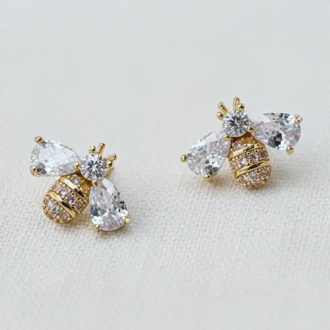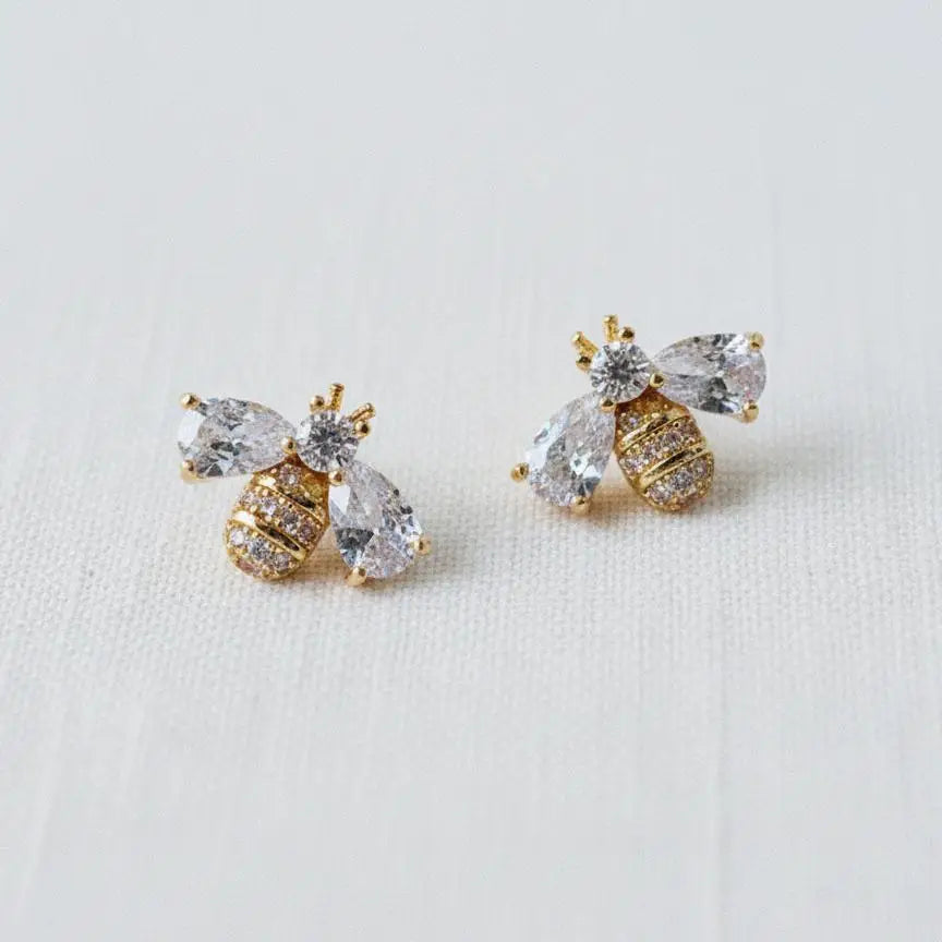 Miniature Cubic Zirconia Bee Stud Earrings