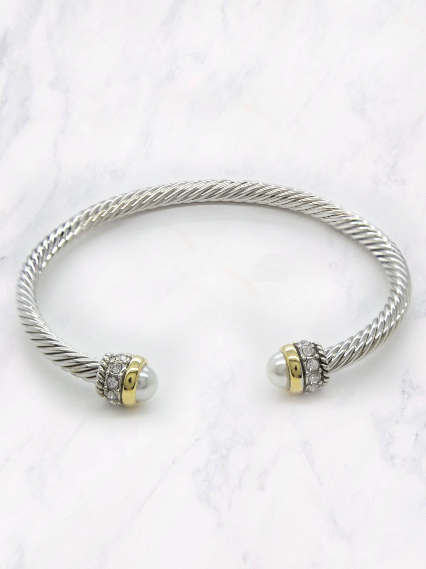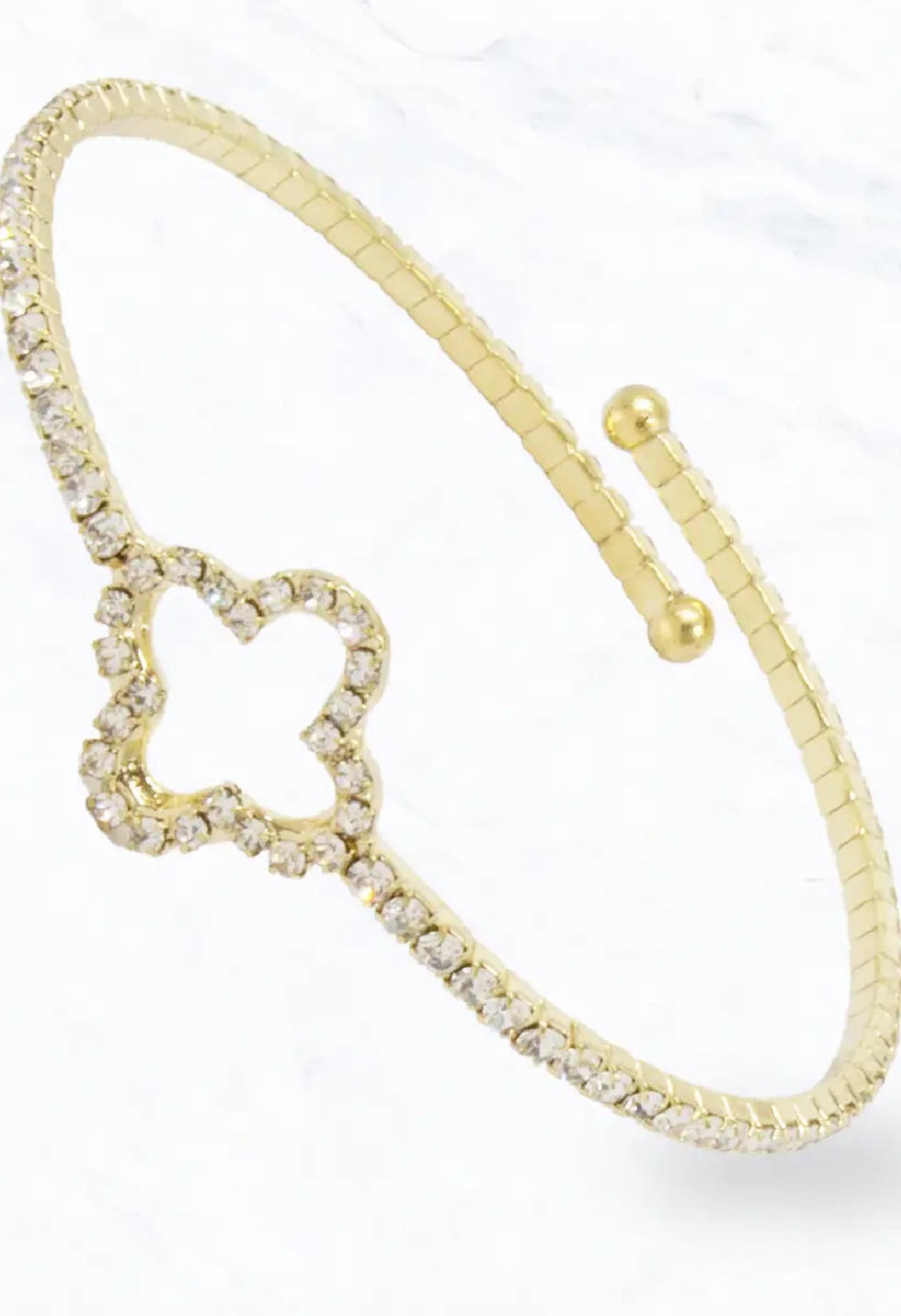 Polished gold-tone beaded bracelet with a sparkling crystal-studded buckle clasp-sleek, bold, and perfect for stacking or statement wear. Size :2.4 in X 2.4 in
