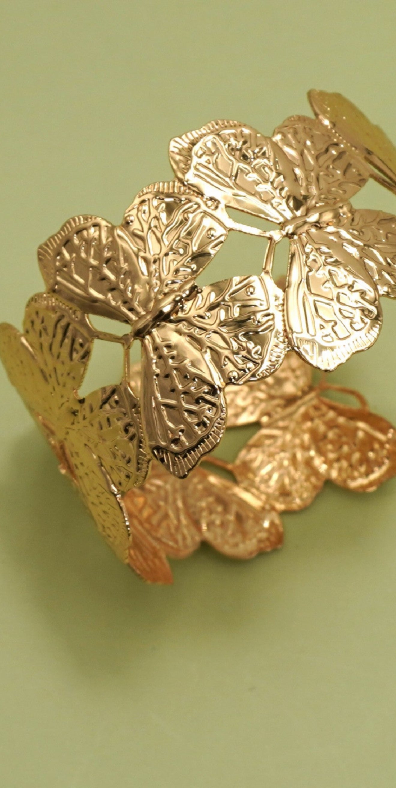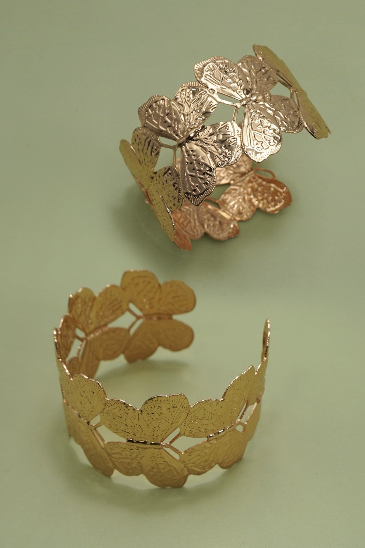 Open-Cut Butterfly Adjustable Bangle Bracelet. Featuring a delicately detailed butterfly design with airy cutouts, this bracelet combines elegance with light, nature-inspired charm. The adjustable open bangle style ensures a comfortable fit. DIMENSION band: adjustable metal finish: Gold Plating product: Lead...